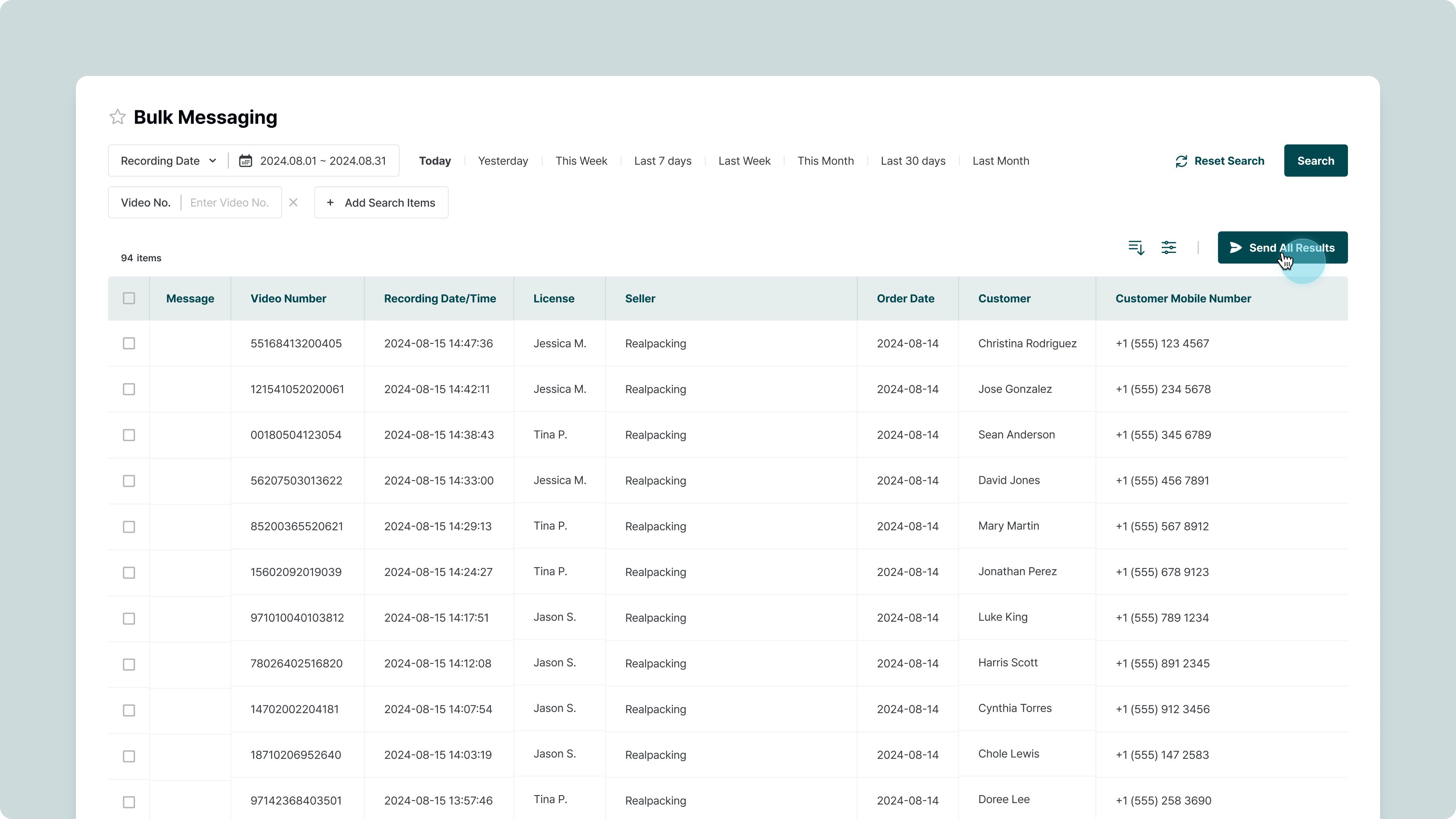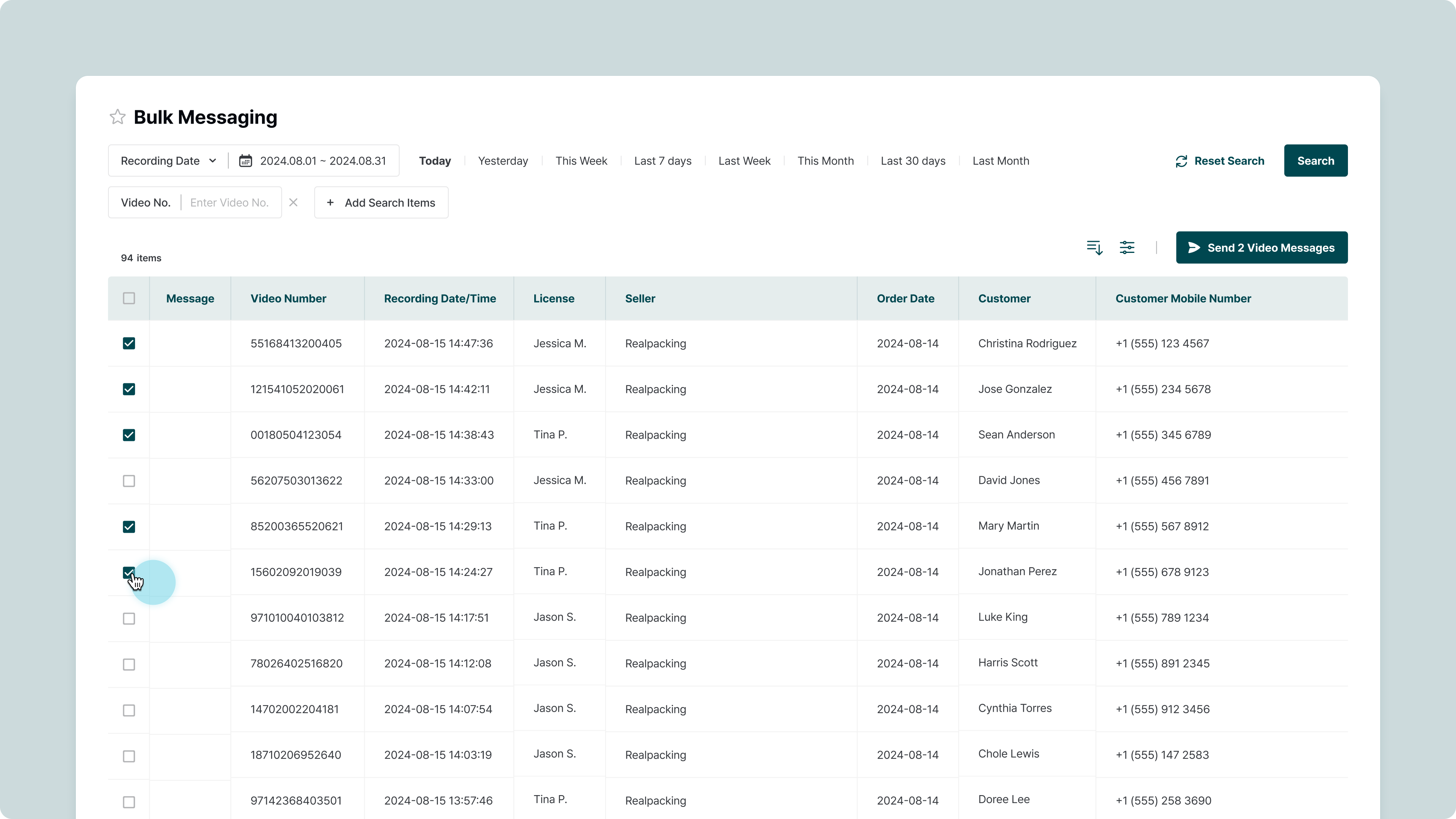With the Bulk Messaging feature, Video Messages can be sent to multiple customers at once.