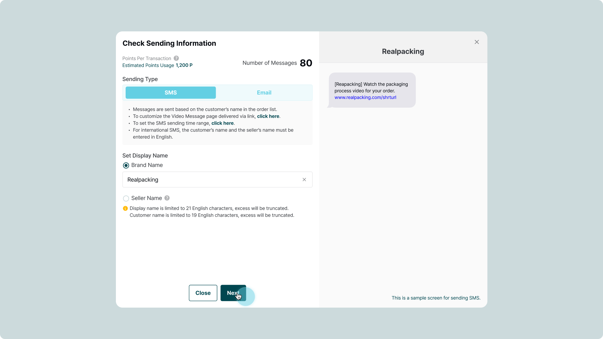 Brand Nameor selectSeller Name.Check the number of messages and click 'Send’.