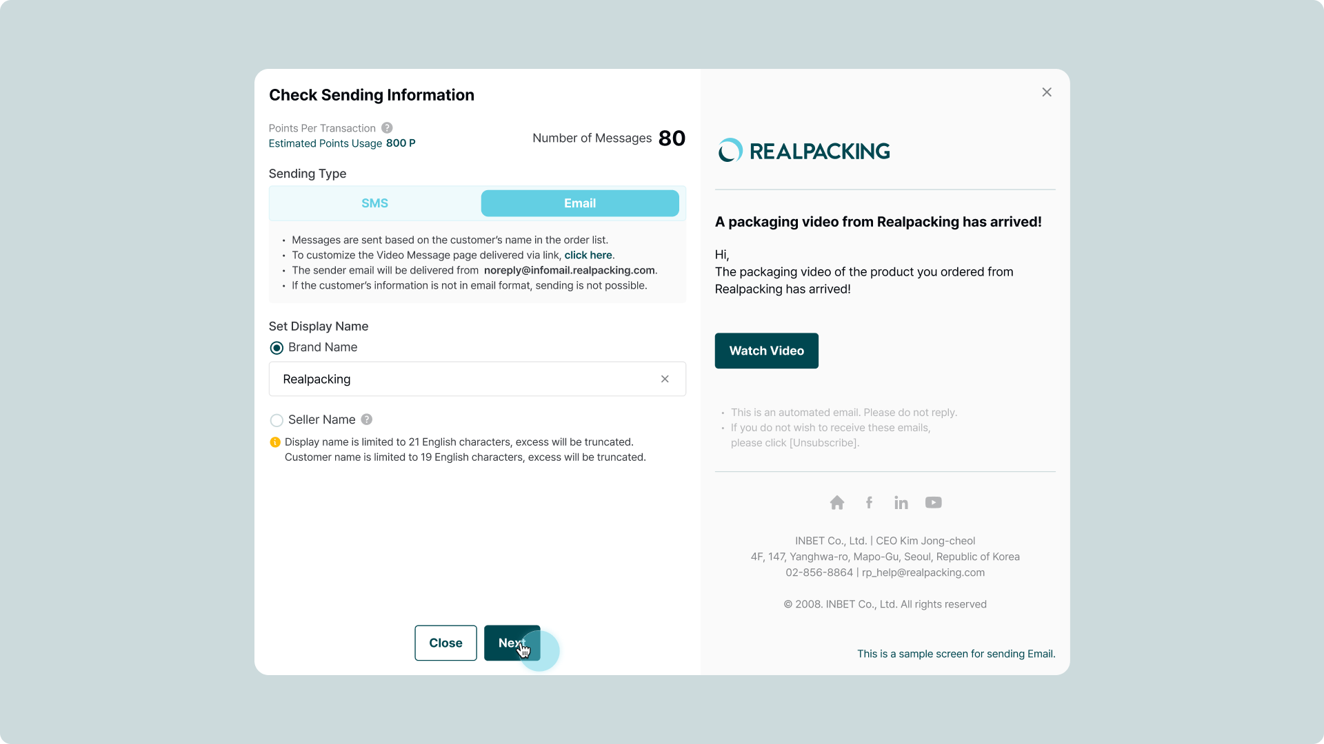 The SMS/Emails sent to customers are managed using a pre-registered template that is the same for all clients. Due to legal compliance requirements, personalized changes are not possible.