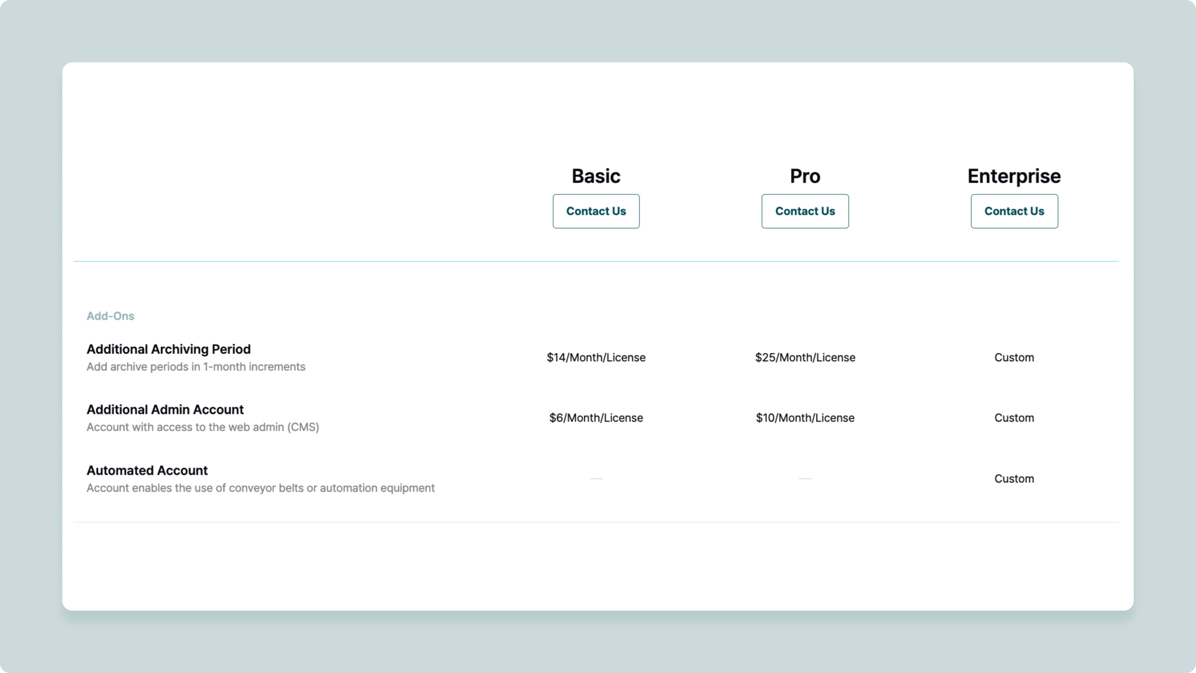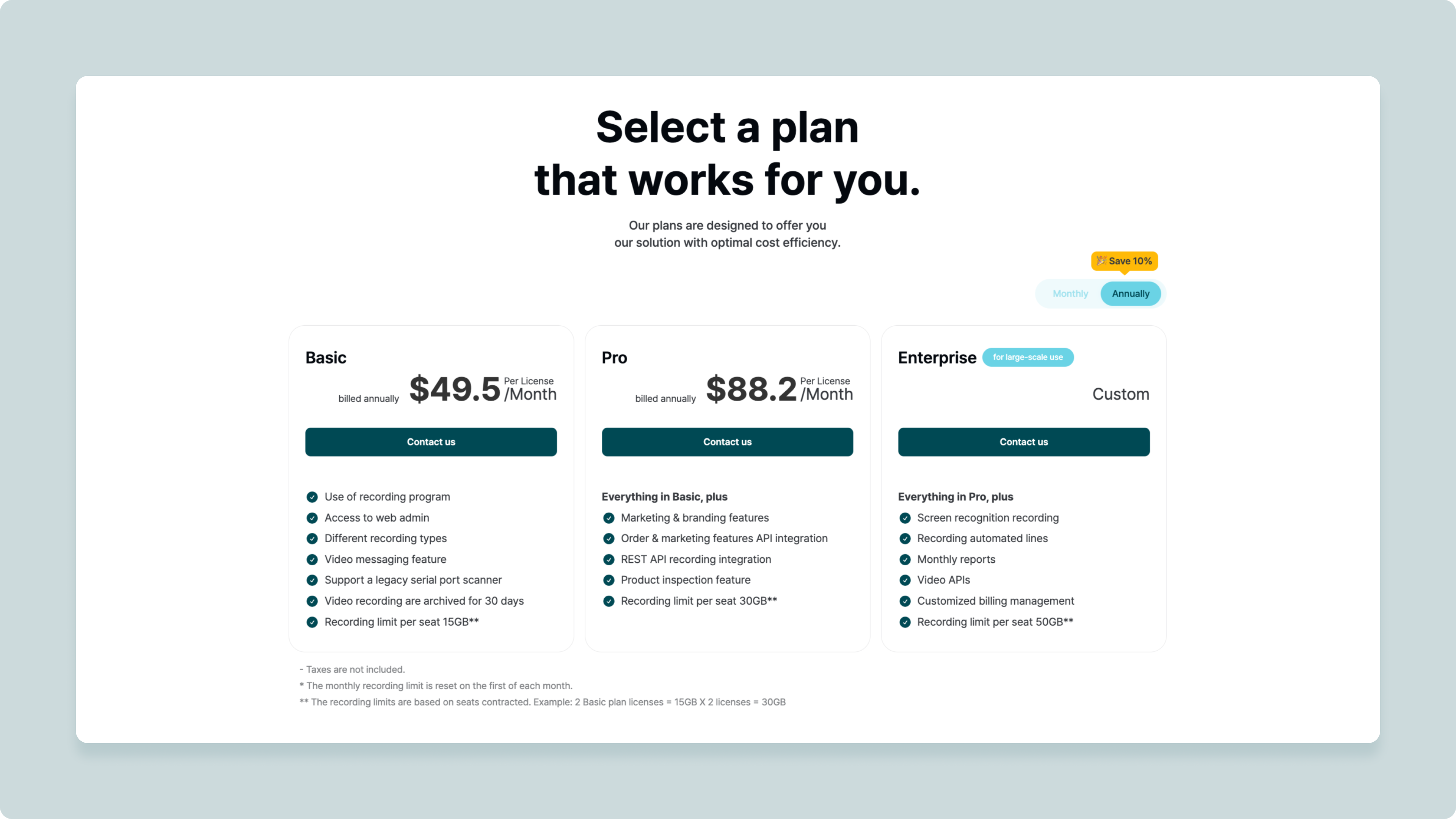 Each pricing plan is categorized based on the features provided. Review the features of each plan and select the one you wish to use.