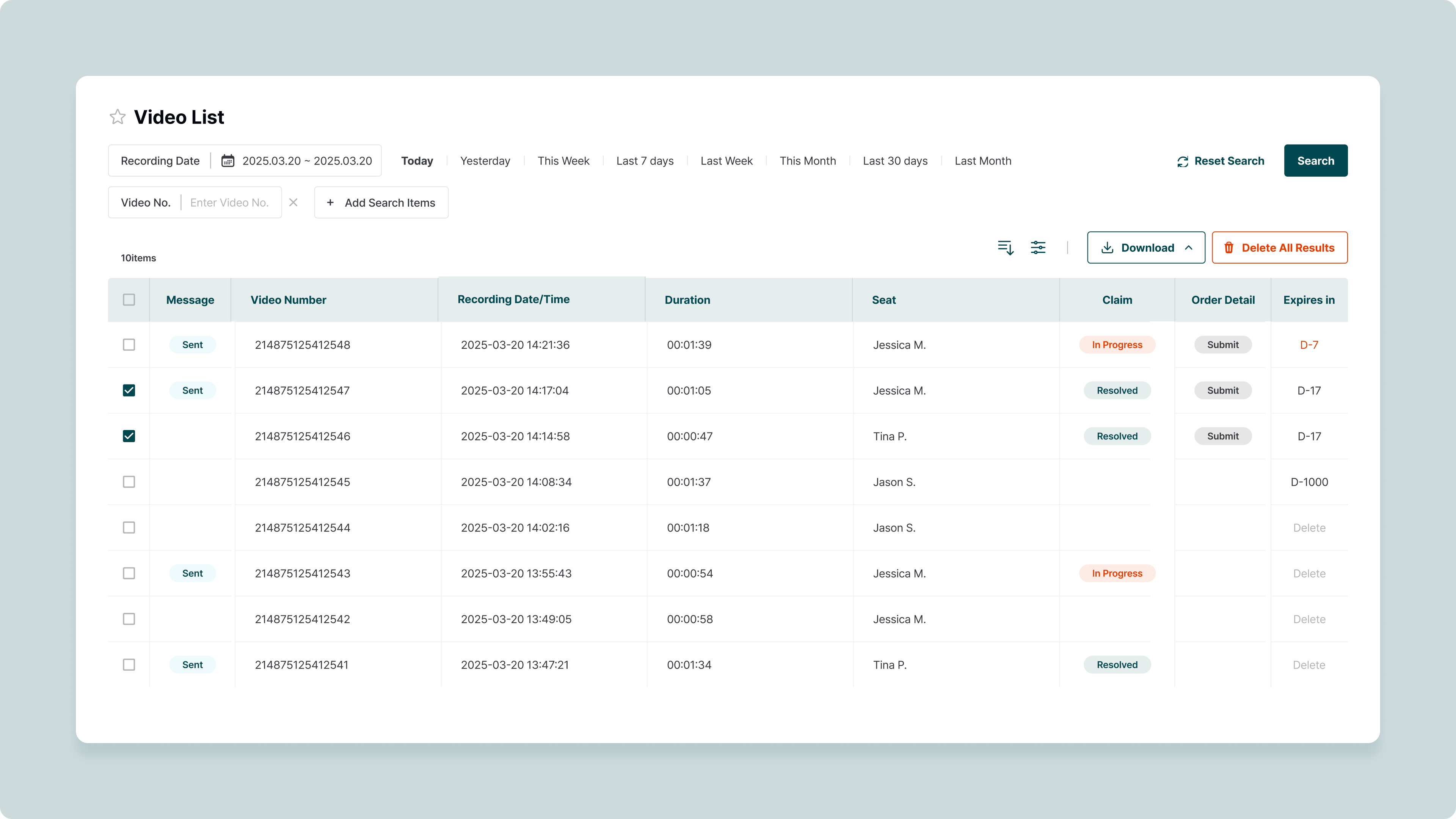 Delete All Resultsoption.After the retention period, the information related to the claim will remain available but the video will be deleted.