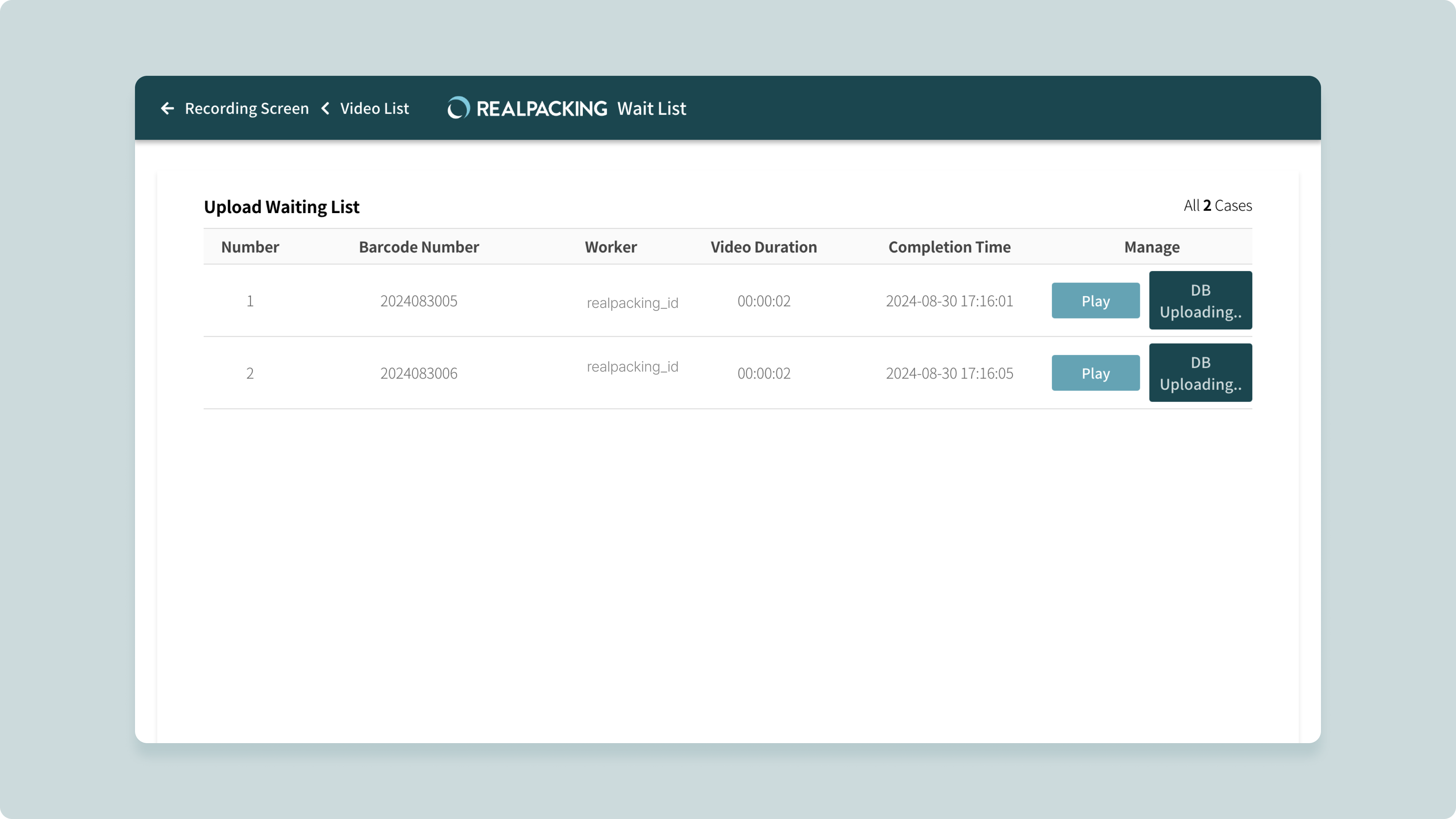 Install the Realpacking Recorder on the worker’s computer and use the equipment to record videos.