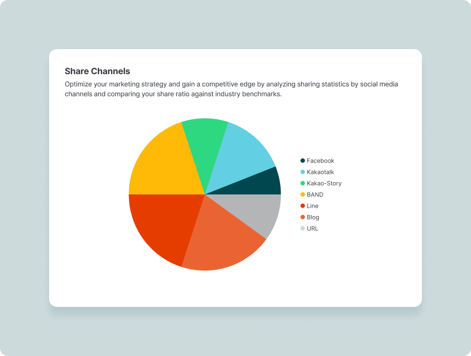 Optimize your marketing strategy with sharing statistics for each social media channel and a ranking of your share rate compared to the industry.