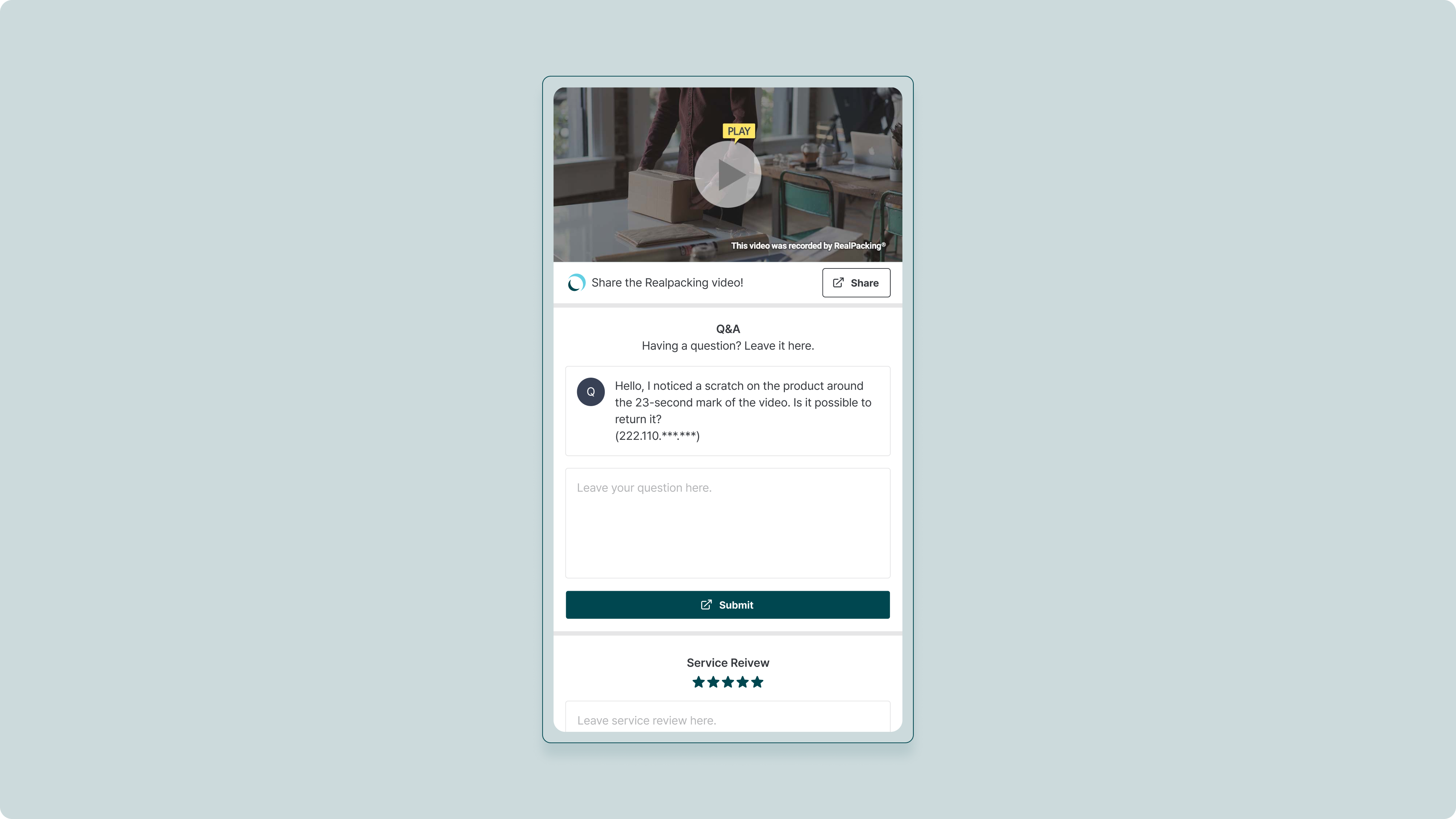 The customer leaves an inquiry in the 'Q&A' section on the Video Message page.