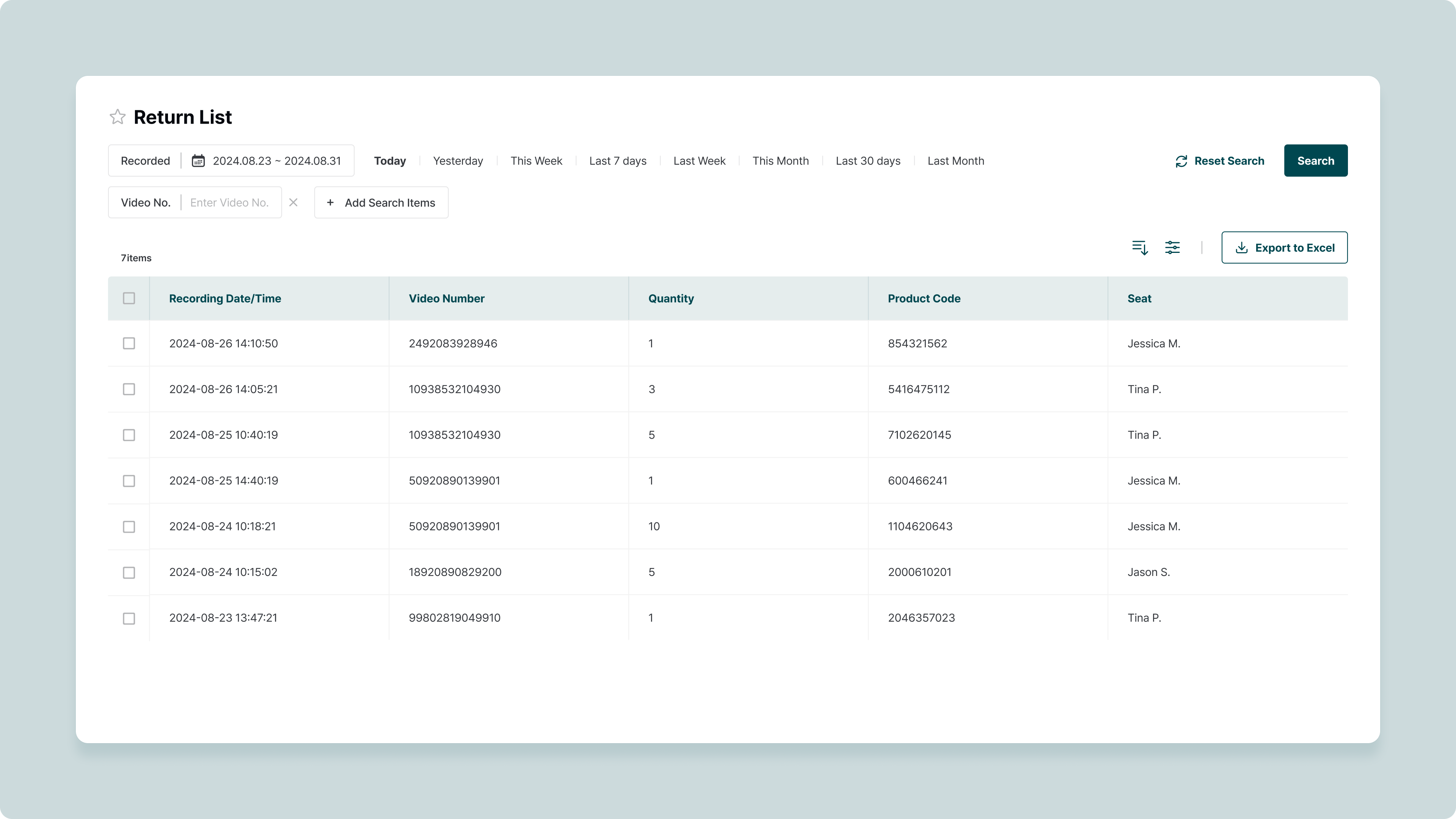 In the Return List page you can view videos recorded by worker accounts under the "Return" recording type.