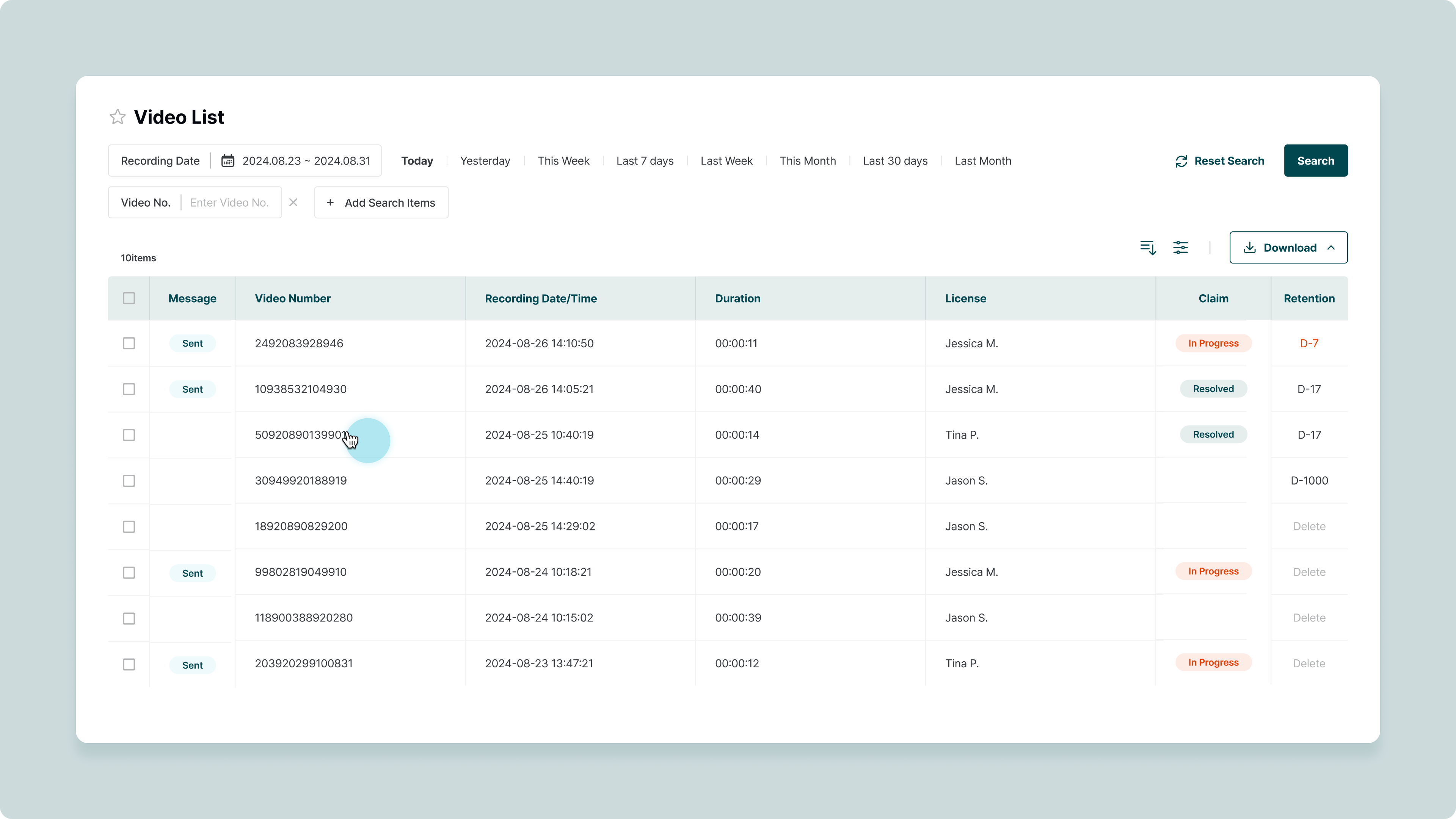 Search for the video you want to send to the customer, and click on it.