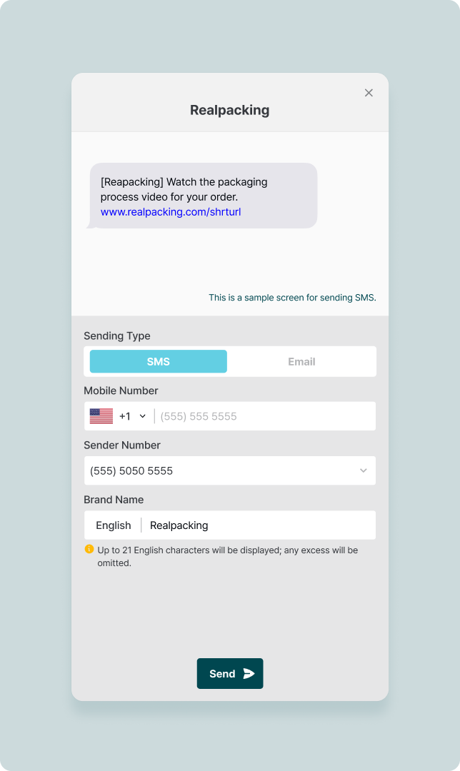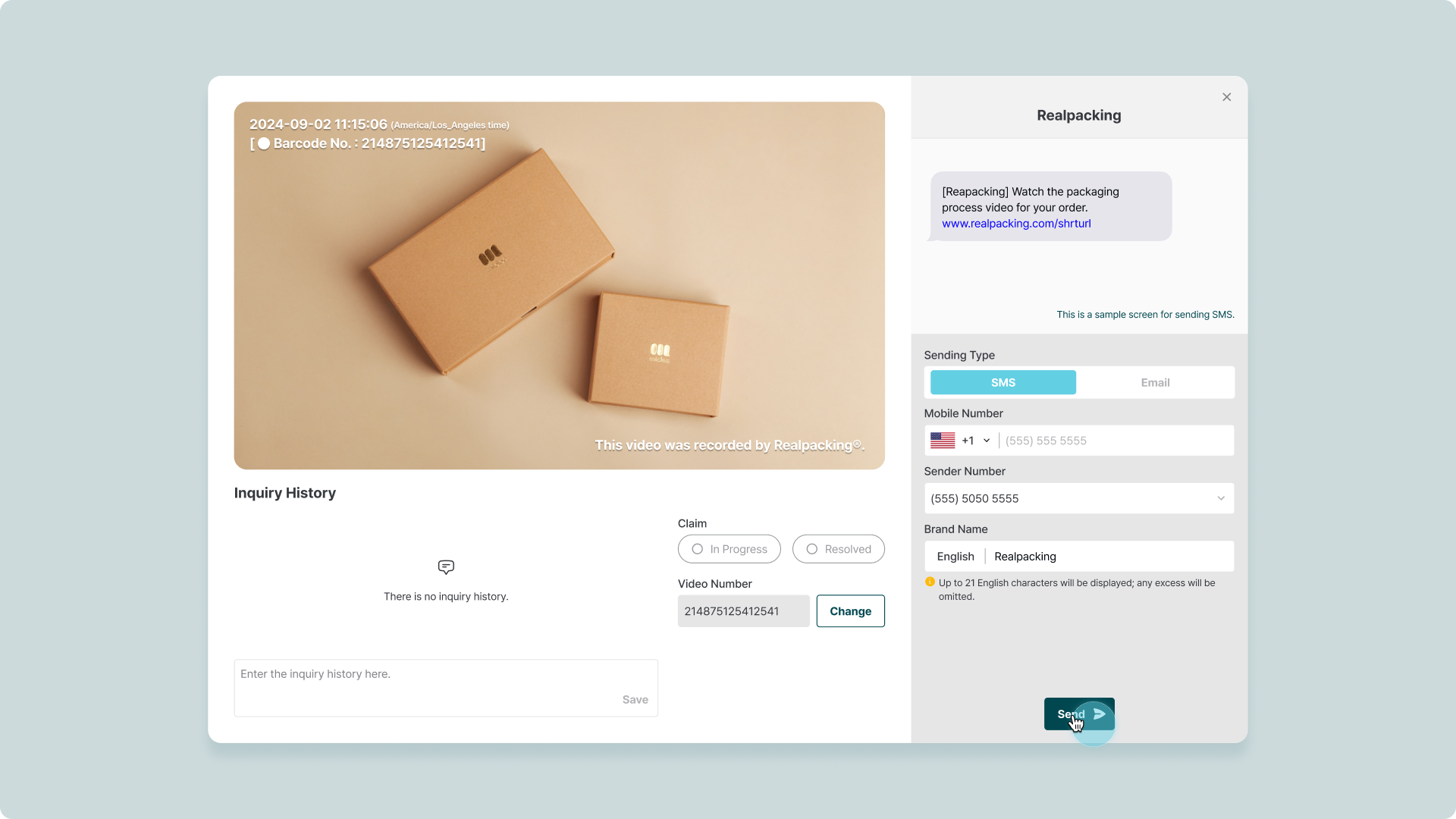 Mobile Phone Numberand click ‘Send’.A link to the video will be sent to the customer’s mobile phone via SMS message.