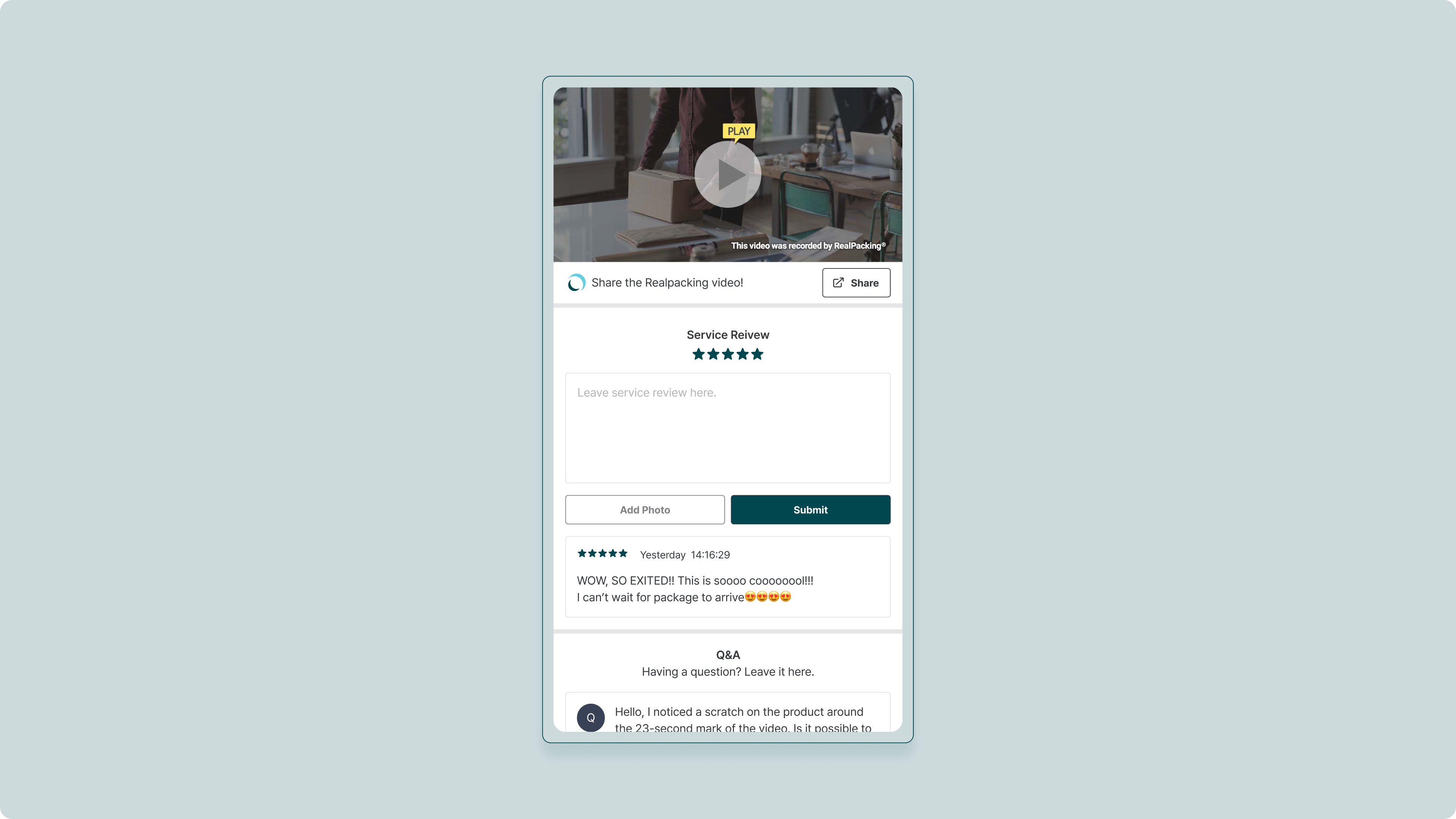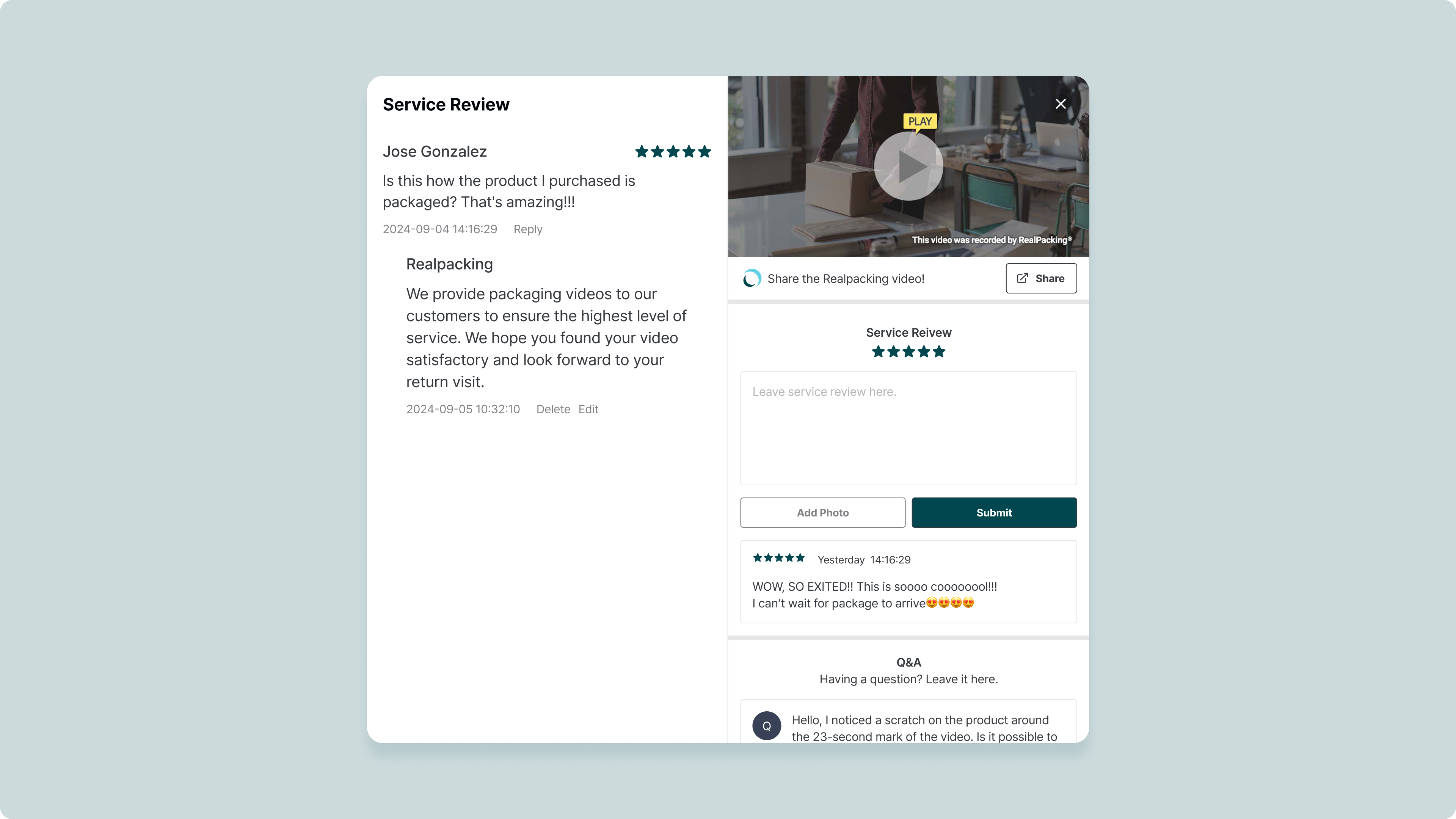 Customers can leave a review in the 'Service Review' section on the Video Message page.