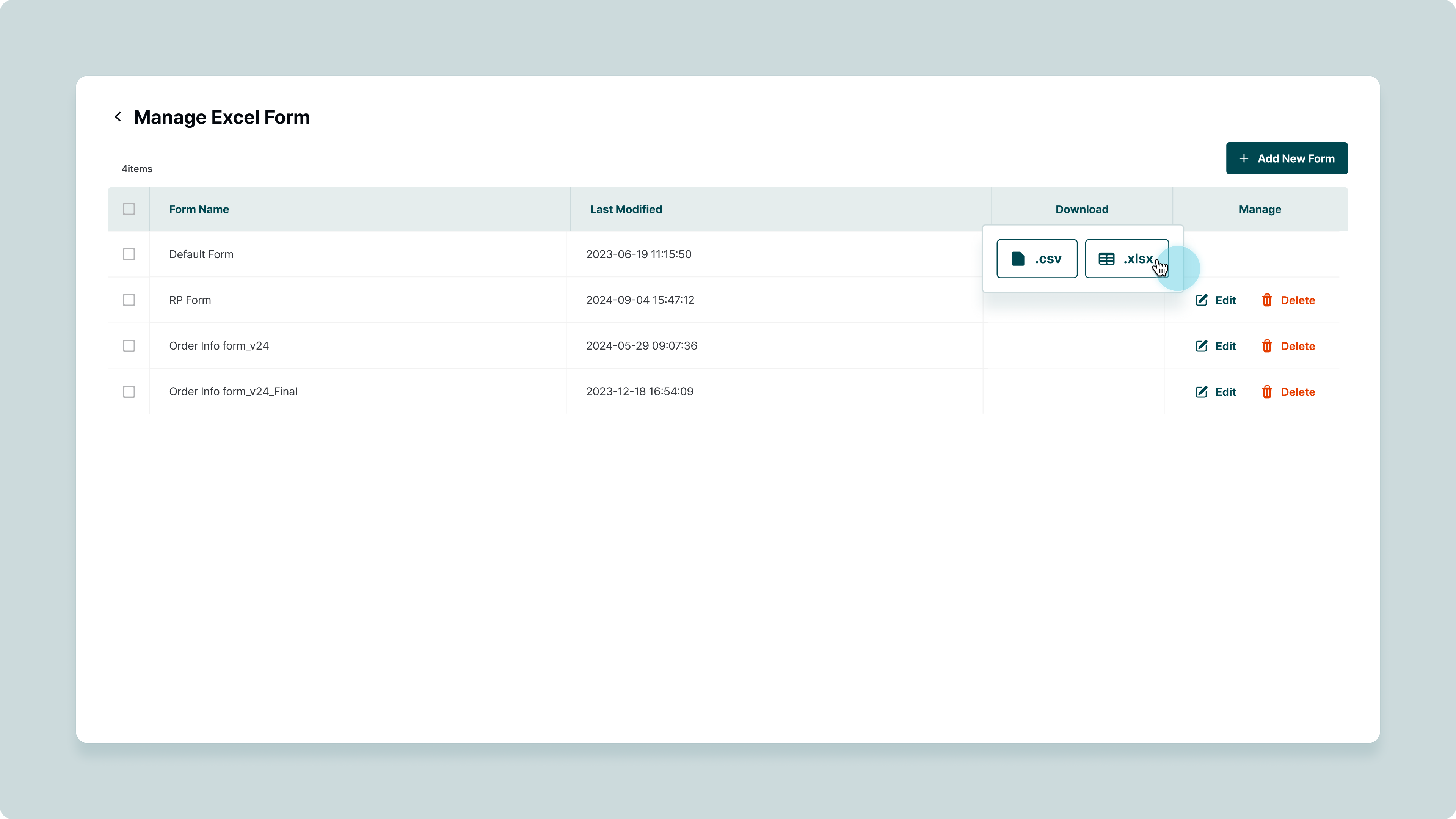 After selecting the options, create an order information file (in XLSX or CSV format) that includes all the