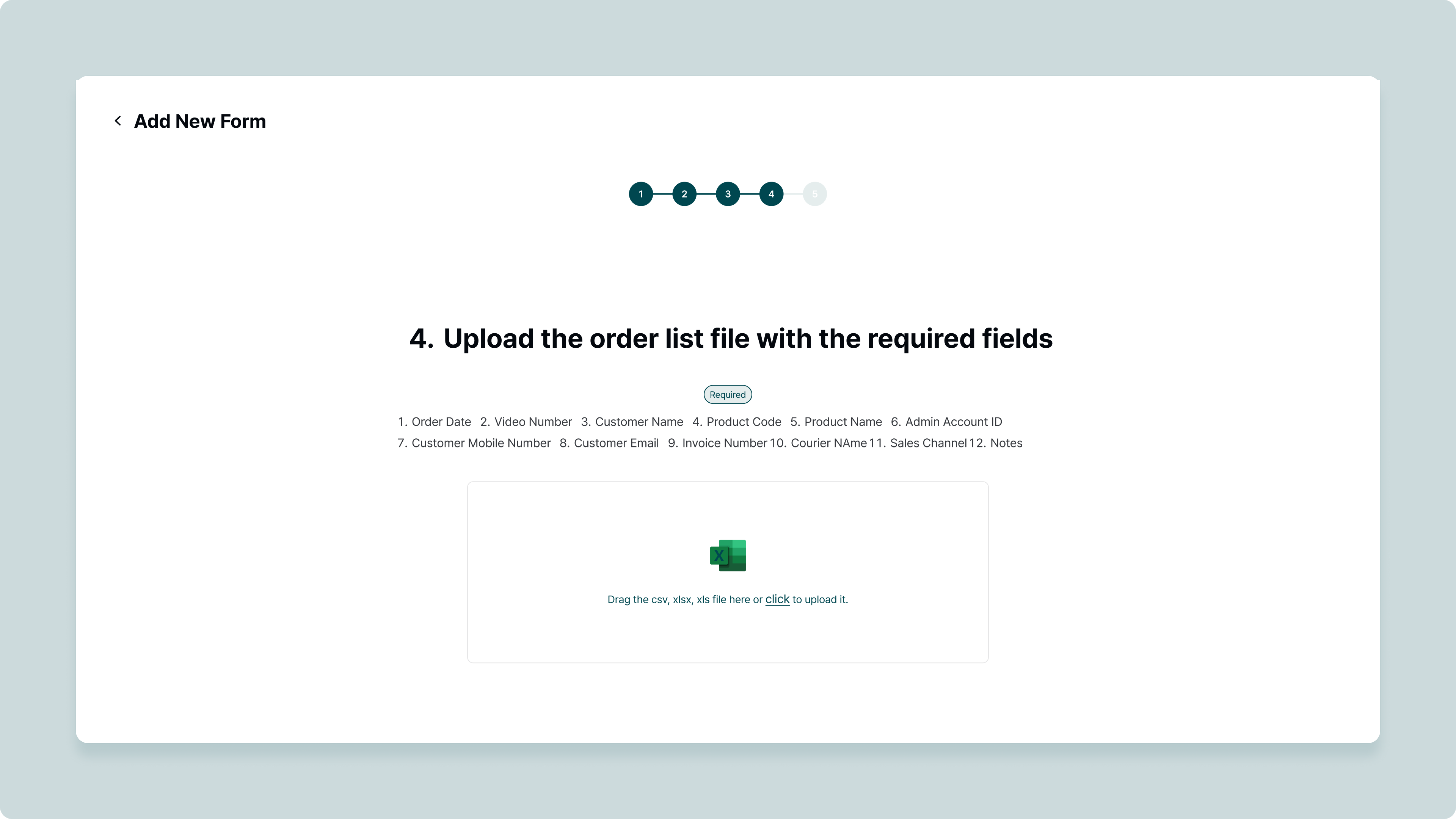 Select a formand select the form that matches the Order List you want to upload.Select the file and
