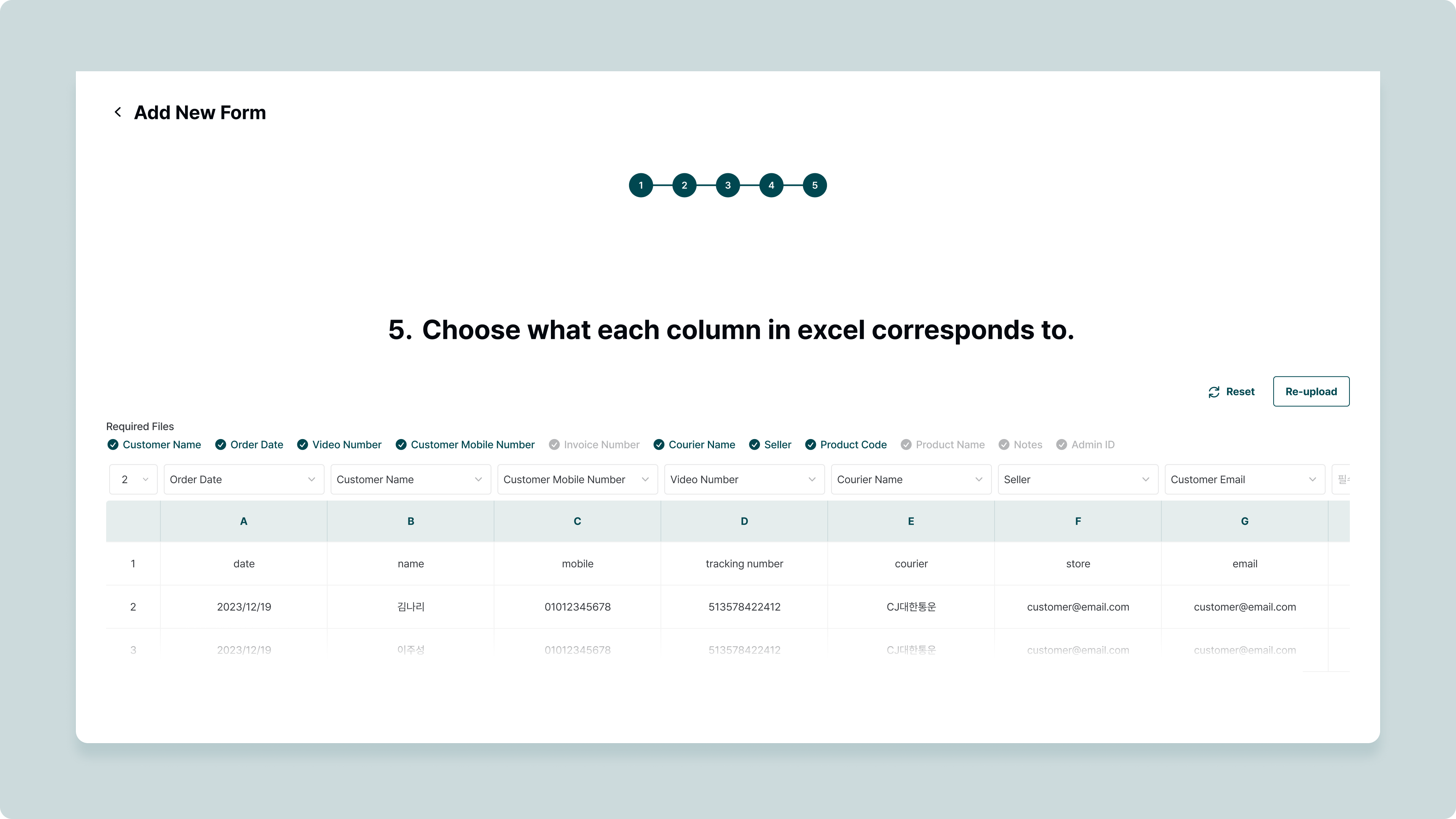 After the Excel template has been registered, you can modify the information in the same order list file and upload it.