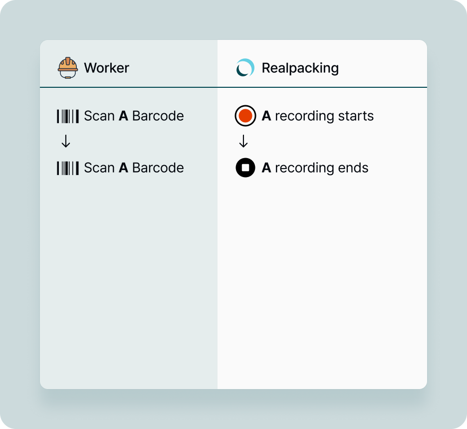 Scan Barcode A > Start recording > Scan Barcode A > End Recording