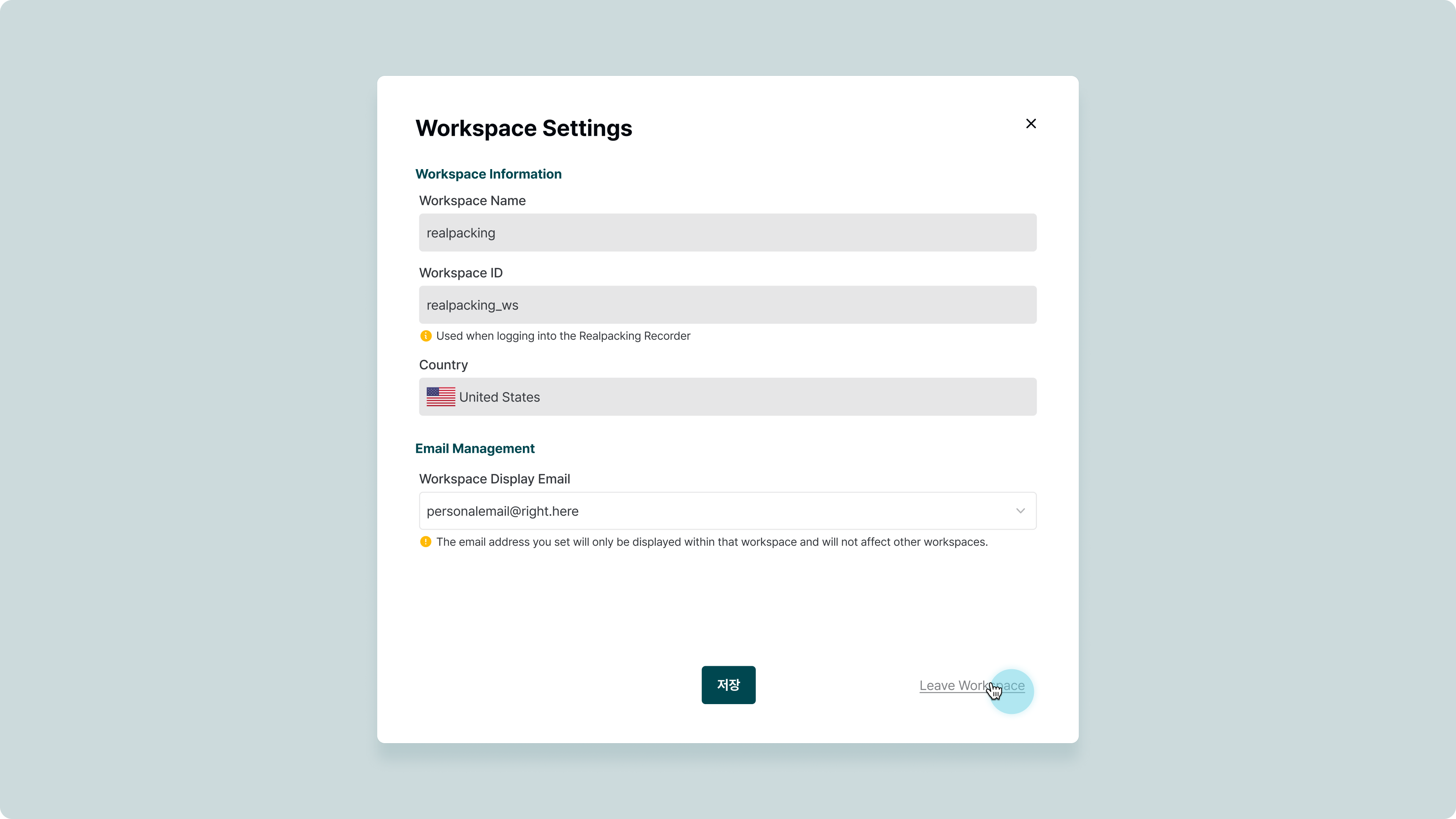 Country | You cannot change the country assigned to the workspace. |