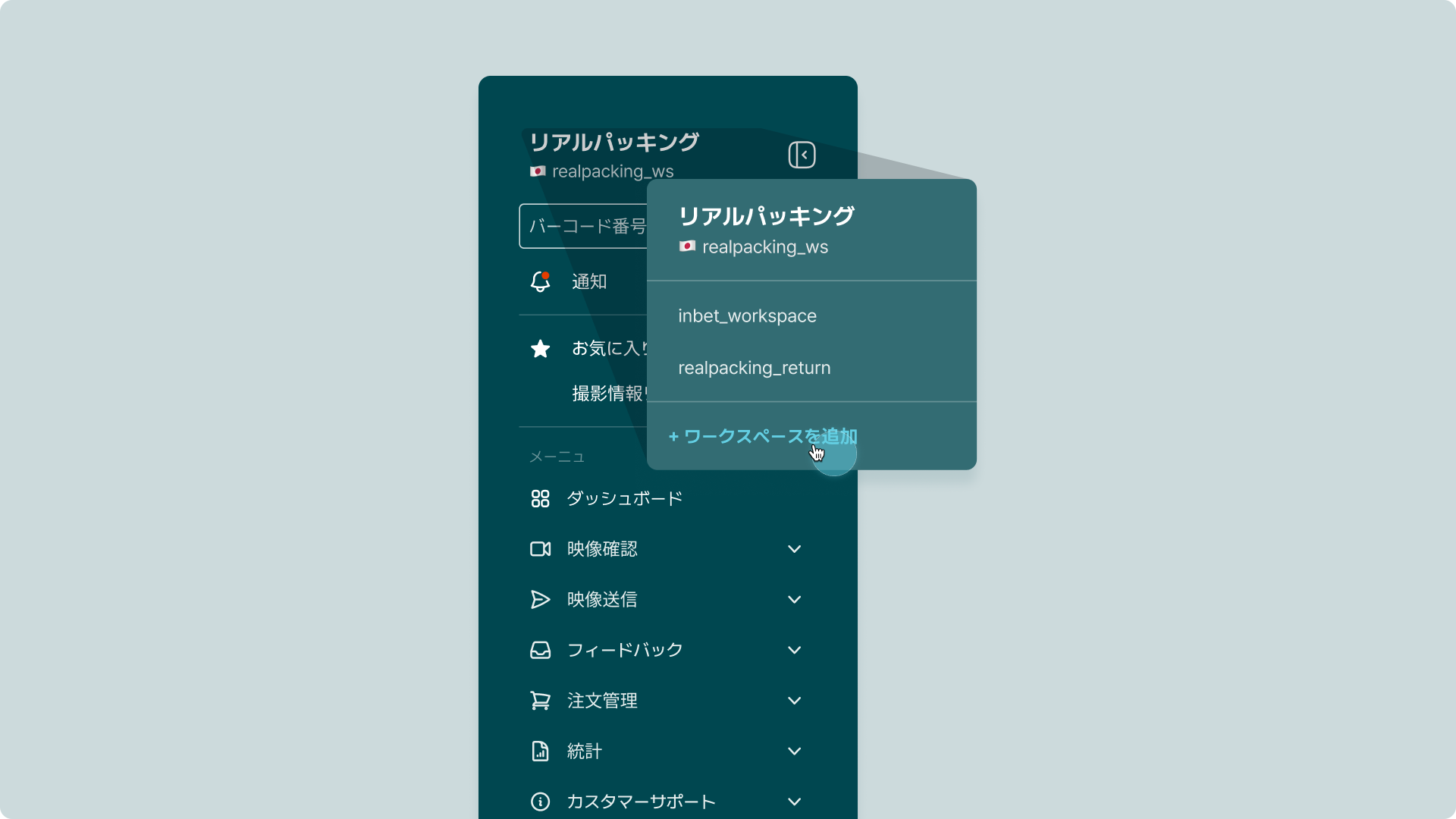 ワークスペースID:ワークスペース固有のIDを意味し、主にリアルパッキングとのコミュニケーションをとる時に、ワークスペースを特定する必要がある場合に使用します。また、作業員が撮影プログラムにログインする際に使います。