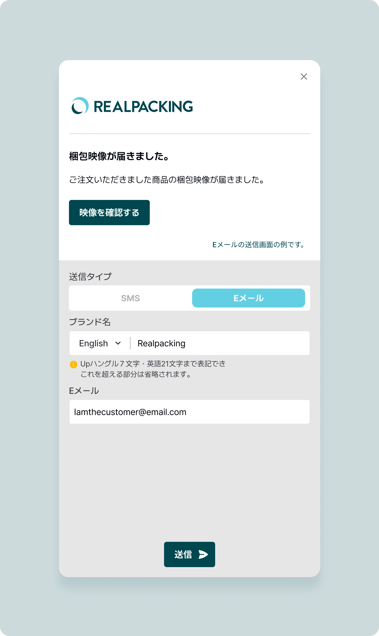 お客様の携帯電話番号にSMSで、映像のリンクが送信されます。