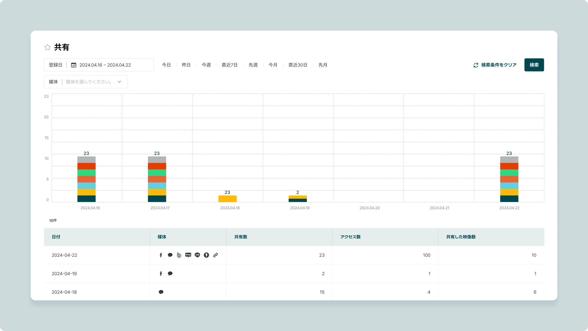 登録日を選択して検索すると、全体の共有状況が確認できます。
