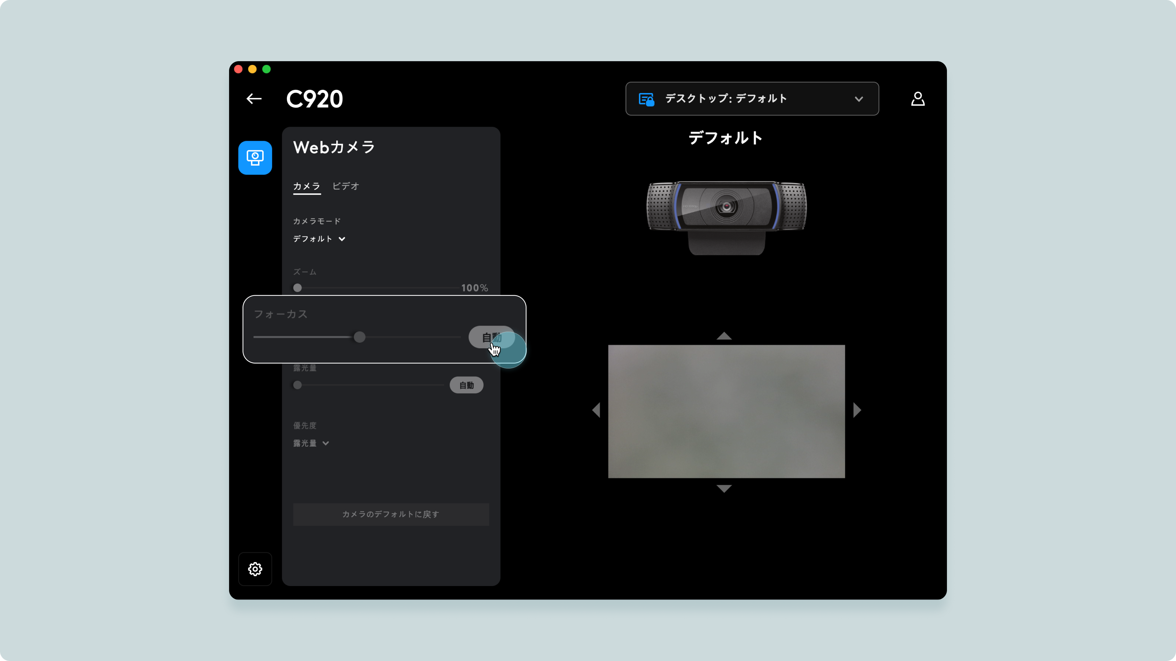 ロジテックC920設定プログラム(Ghub)オートフォーカスの解除