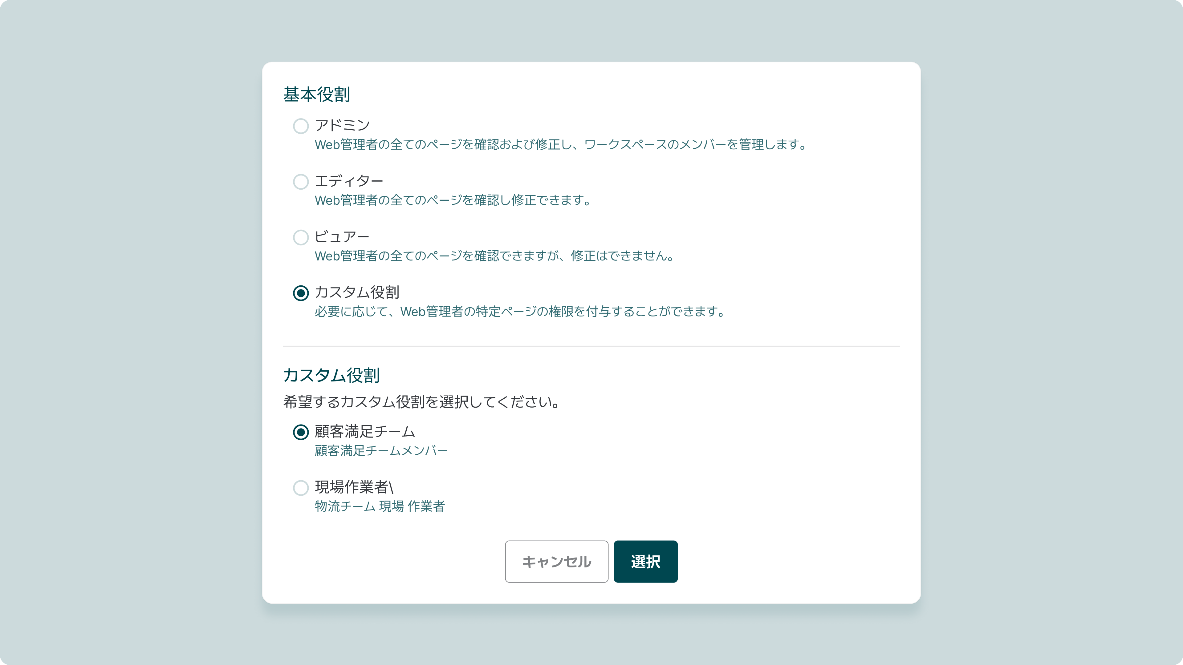 管理者の基本役割を選択します。