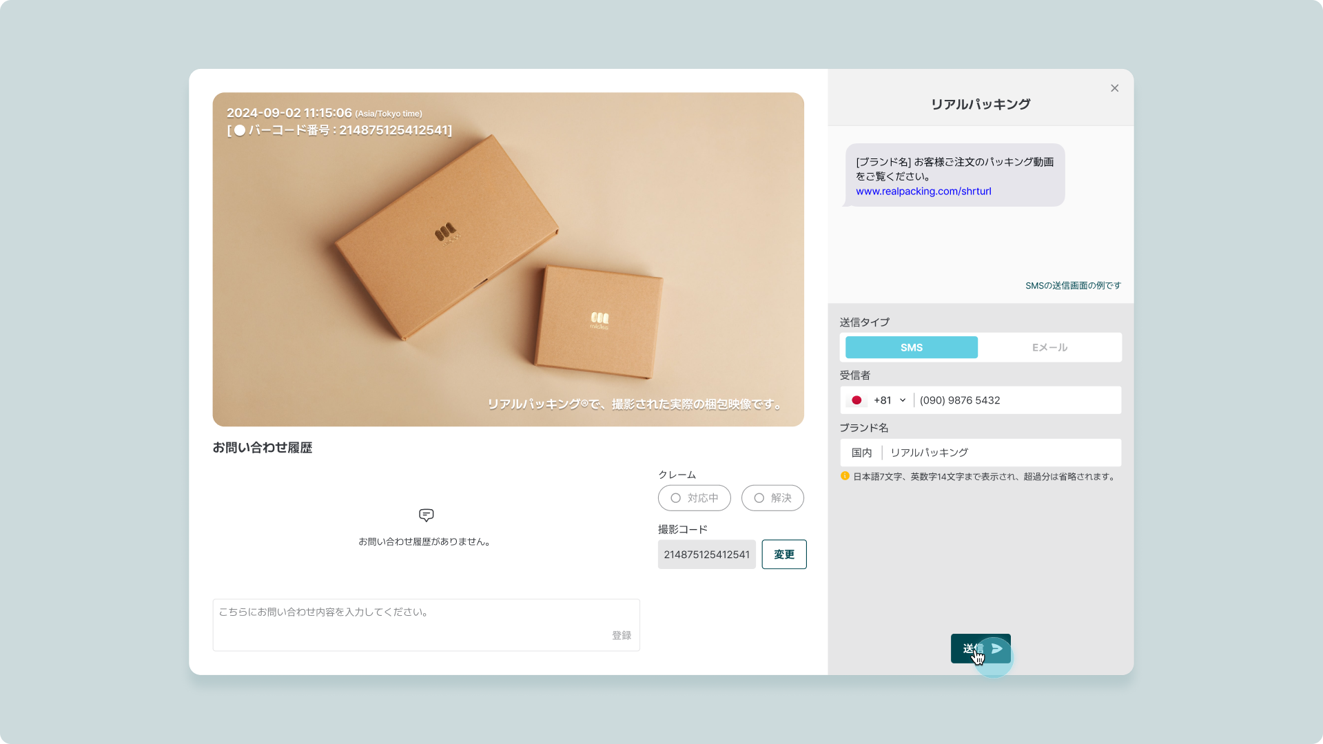 2. 顧客の携帯電話番号を入力して送信します。