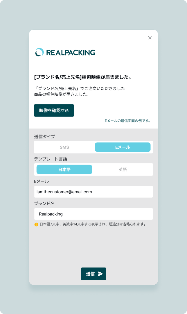 2. 顧客のメールアドレスを入力して送信します。