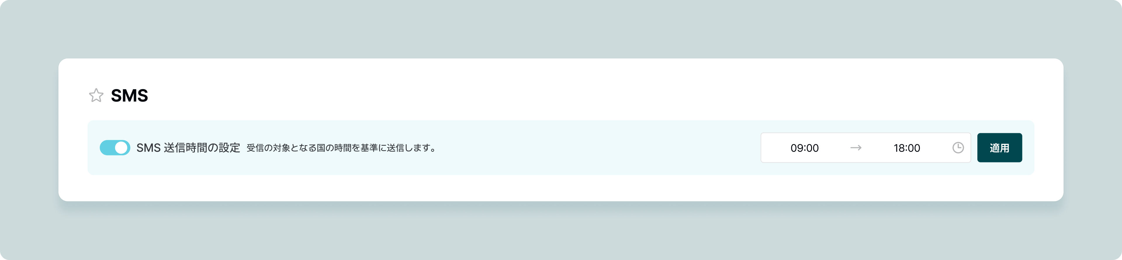 SMS送信時間の設定タブで、設定した時間帯のみSMSが送信されます。