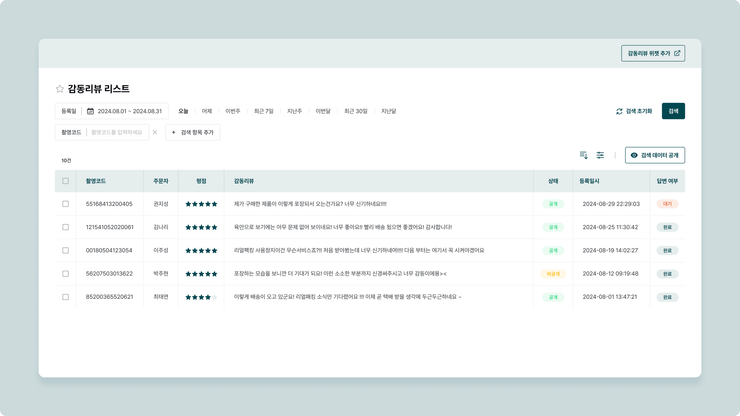 감동리뷰를 통해 고객의 반응을 즉각적으로 확인할 수 있습니다.