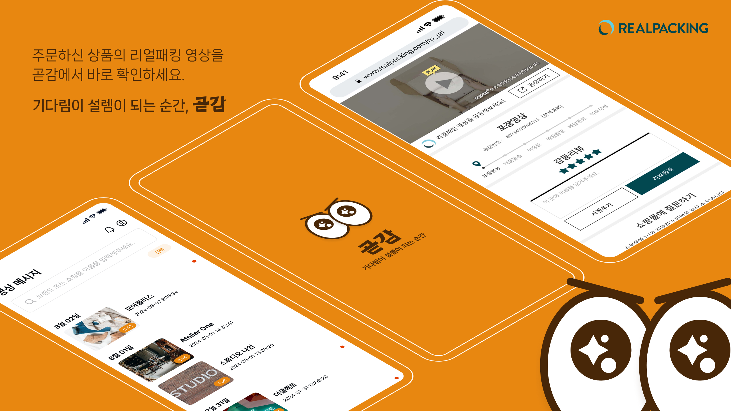 내 상품이 제대로 포장되었는지, 문제없이 출고되었는지 알 수 있는 리얼패킹 영상을 안전하게 곧감에서 바로 확인할 수 있습니다.