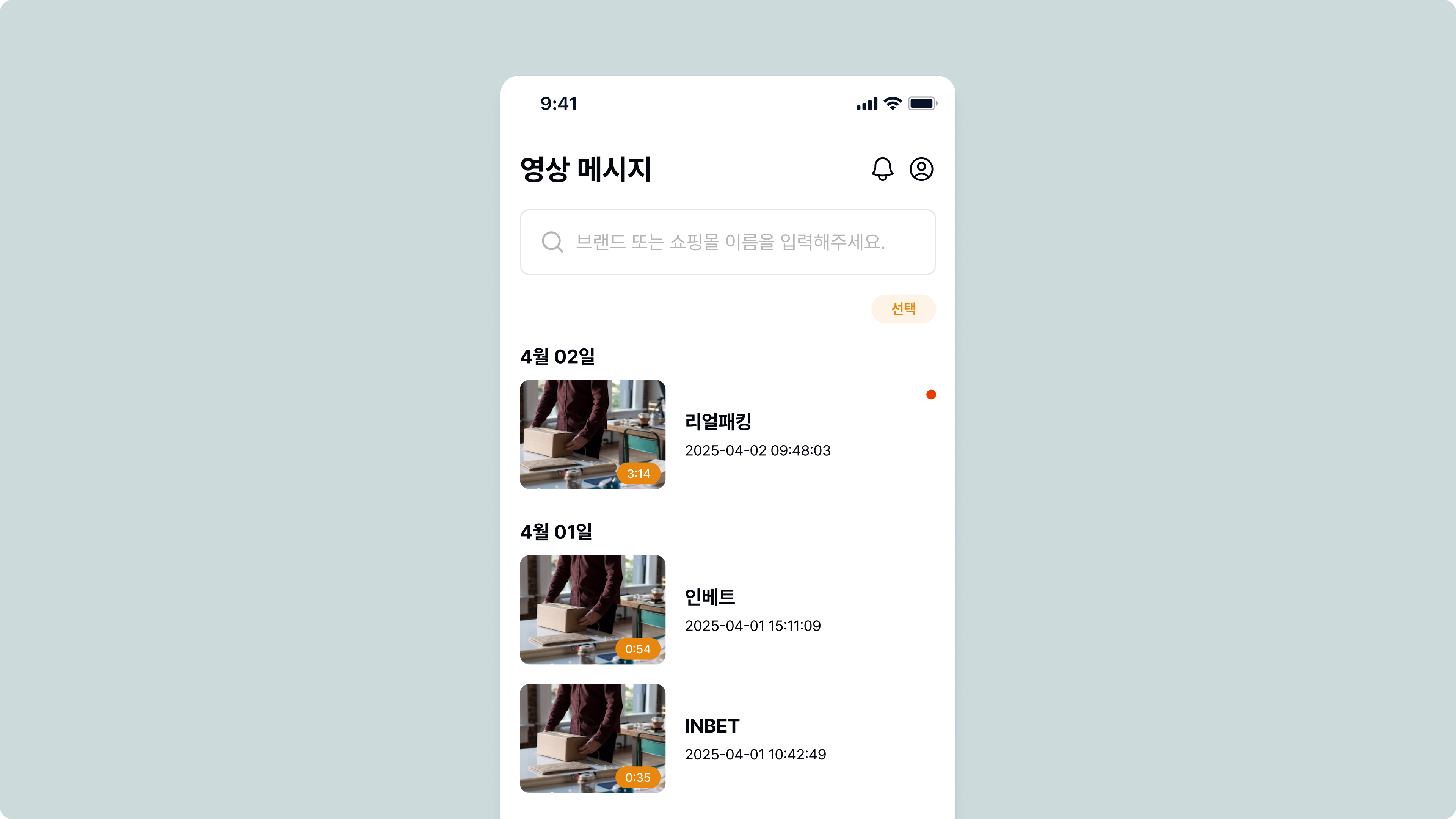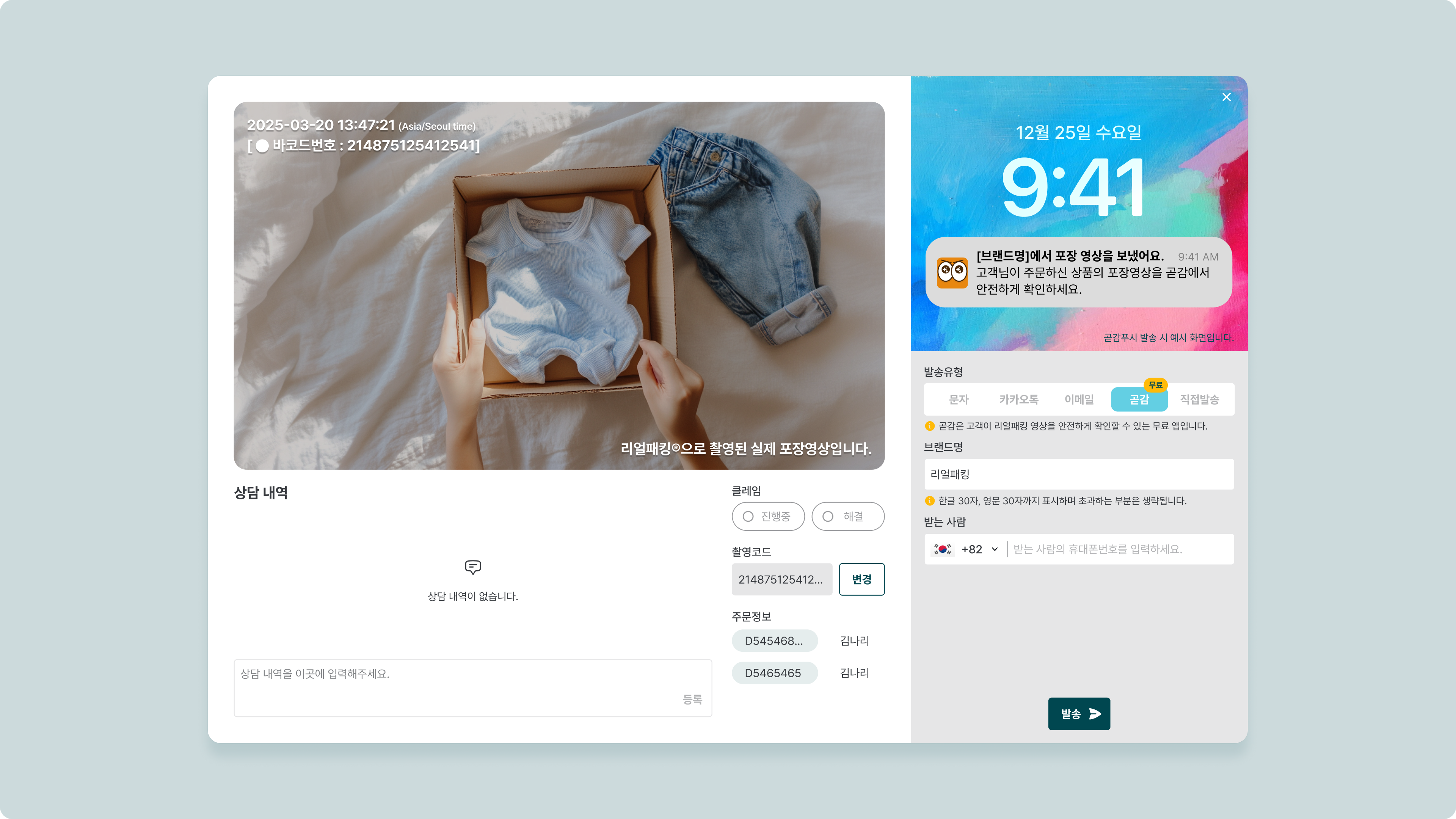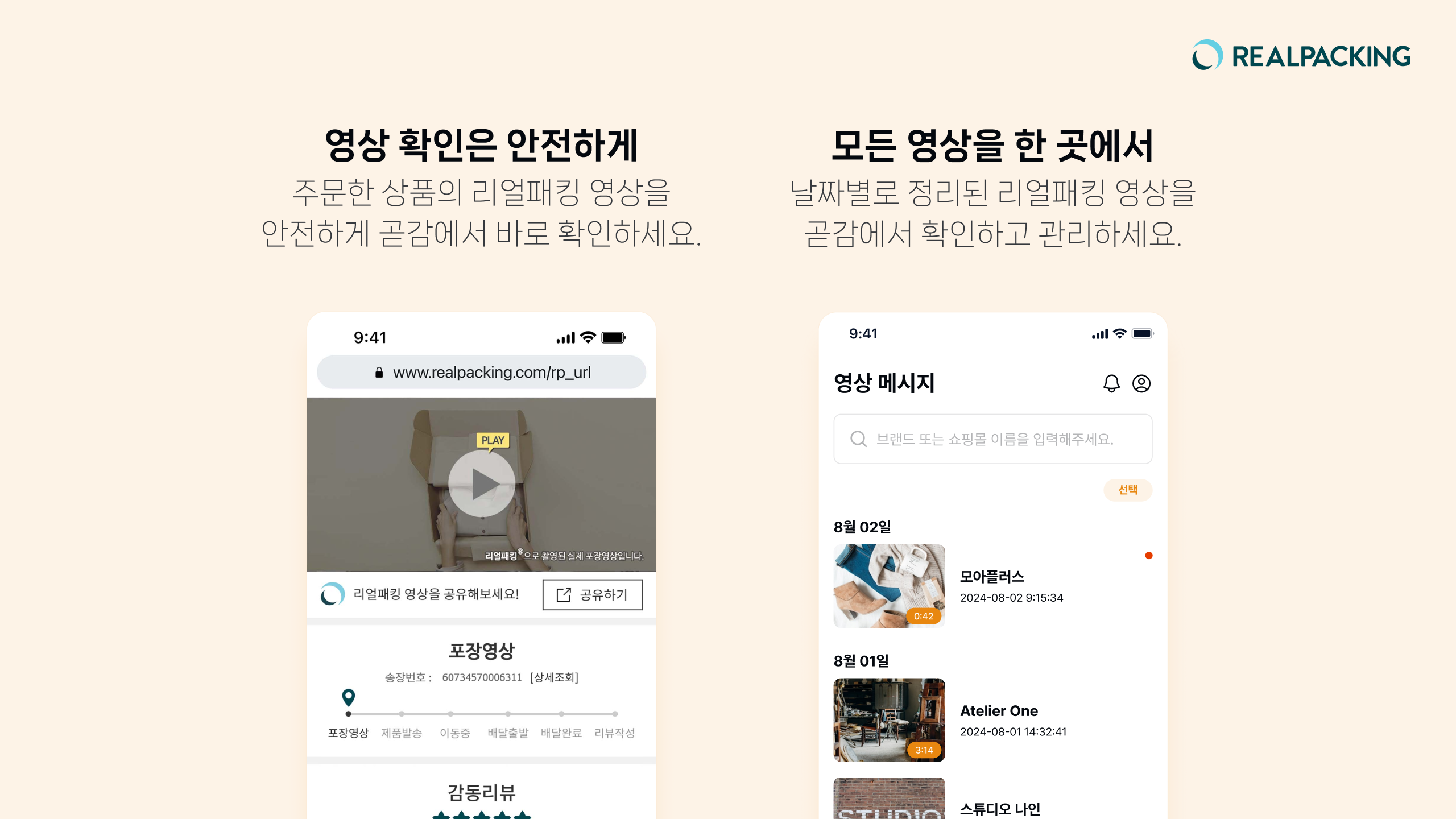 주문별로 정리된 리얼패킹 영상을 날짜별로 확인하고, 필요할 때 바로 찾아볼 수 있습니다.