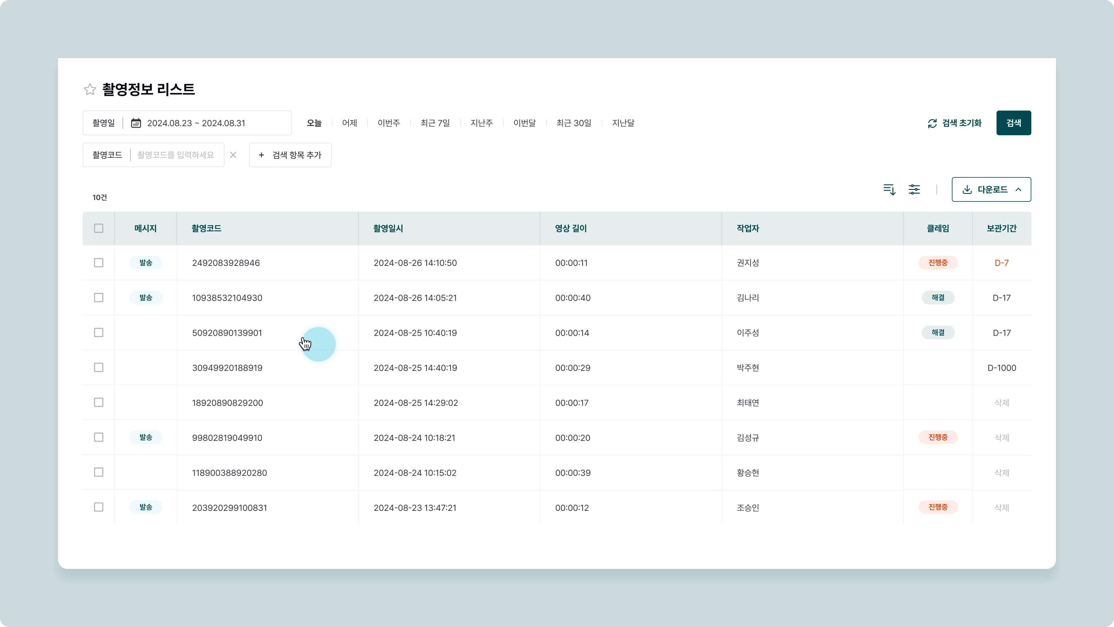 영상 확인 → 촬영 정보 리스트