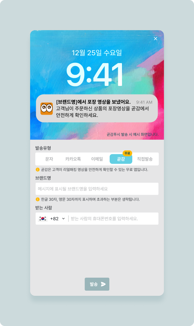 곧감으로 메시지를 수신하는 고객은 곧감 APP 을 설치해야 영상을 확인 할 수 있습니다.
