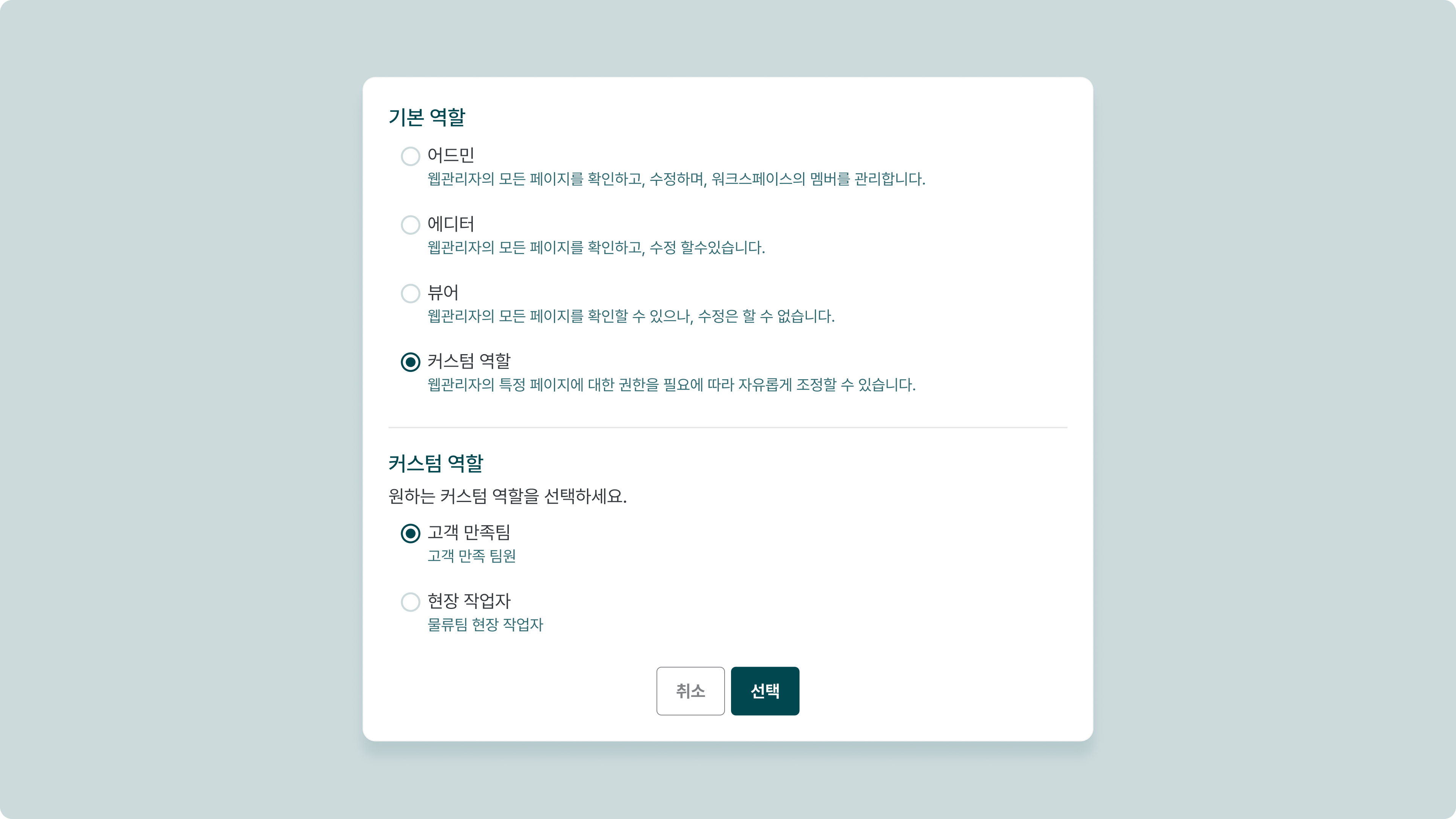역할 선택 | 관리자의 기본 역할을 선택합니다. |