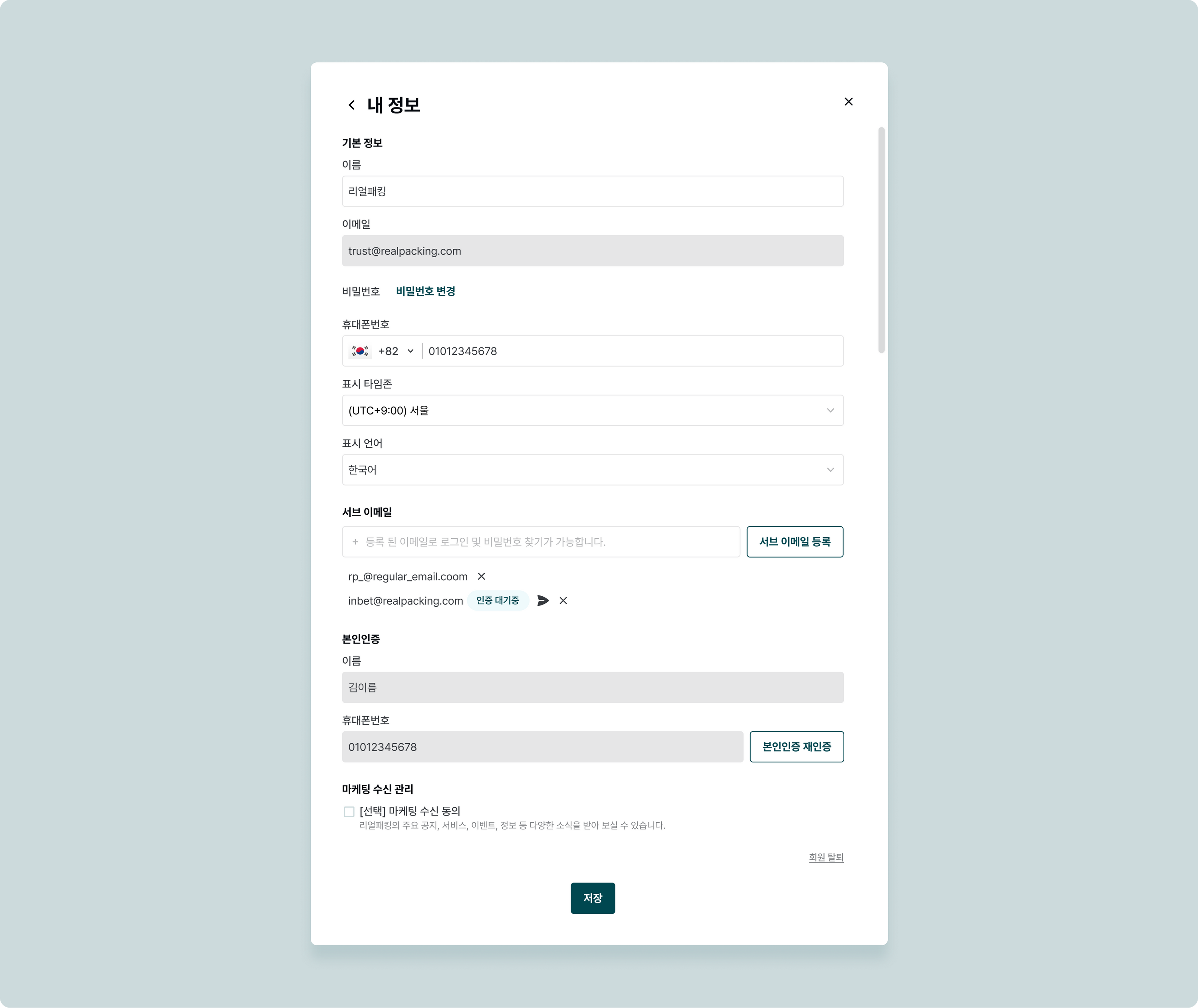 회원 가입에서 사용한 이메일 이외 서브 이메일을 추가로 등록합니다.