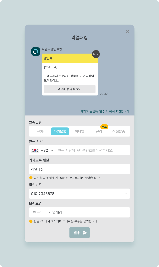 카카오 알림톡은 한국 전화번호 사용 고객에게만 전송 가능합니다.