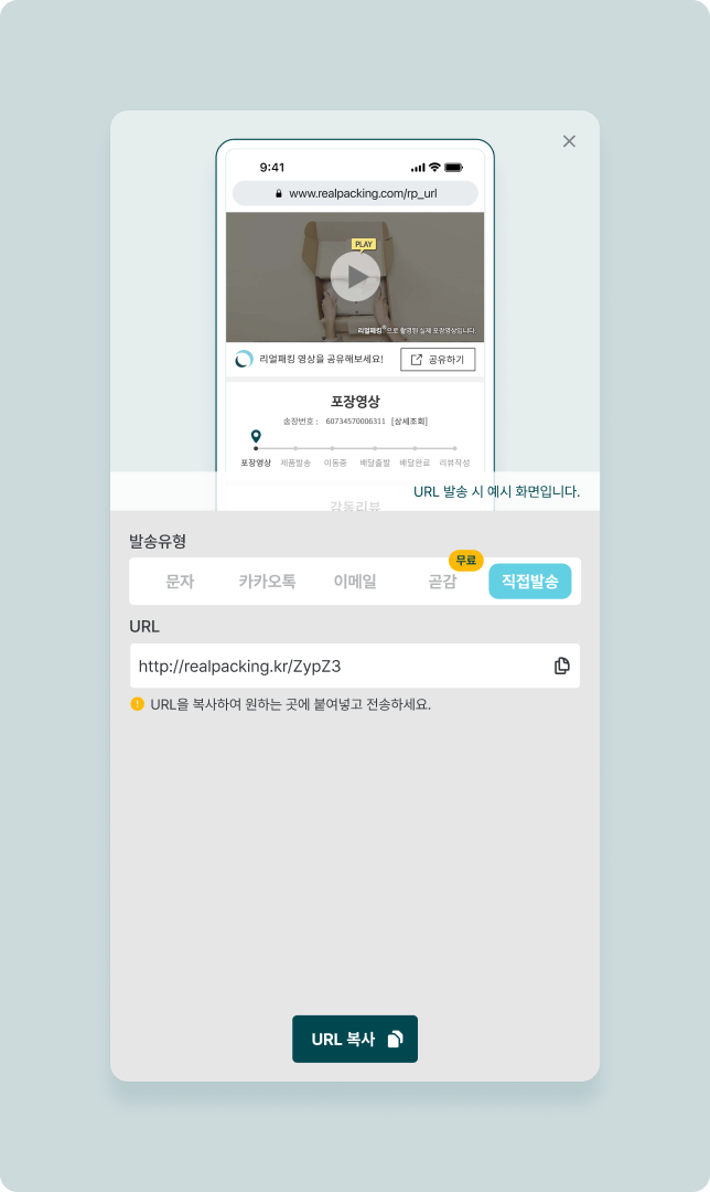 고객에게 메시지 발송없이 영상 URL을 직접 전달 할때 사용합니다.