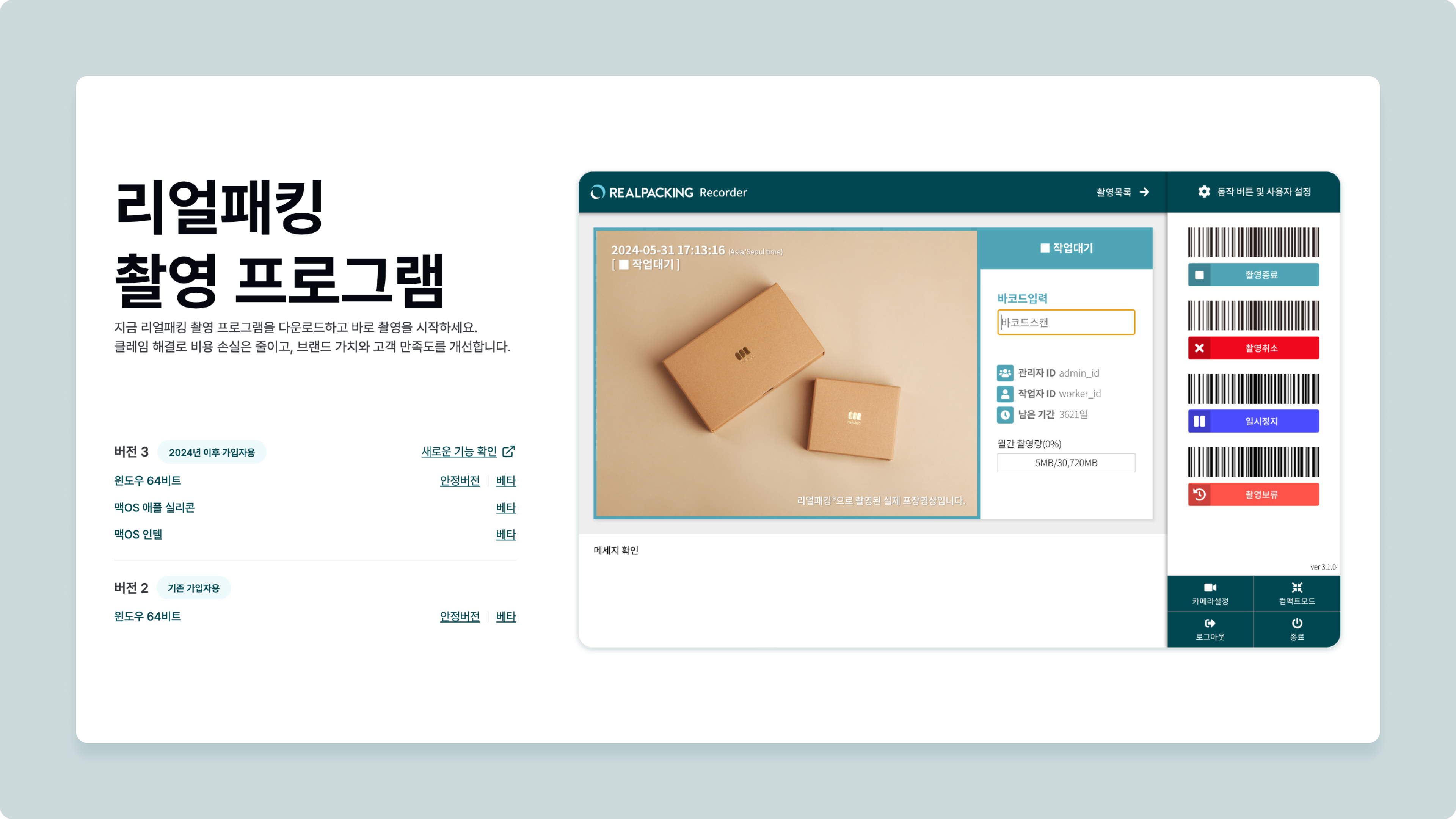 촬영 장비는 리얼패킹 홈페이지에서 구매할 수 있습니다.