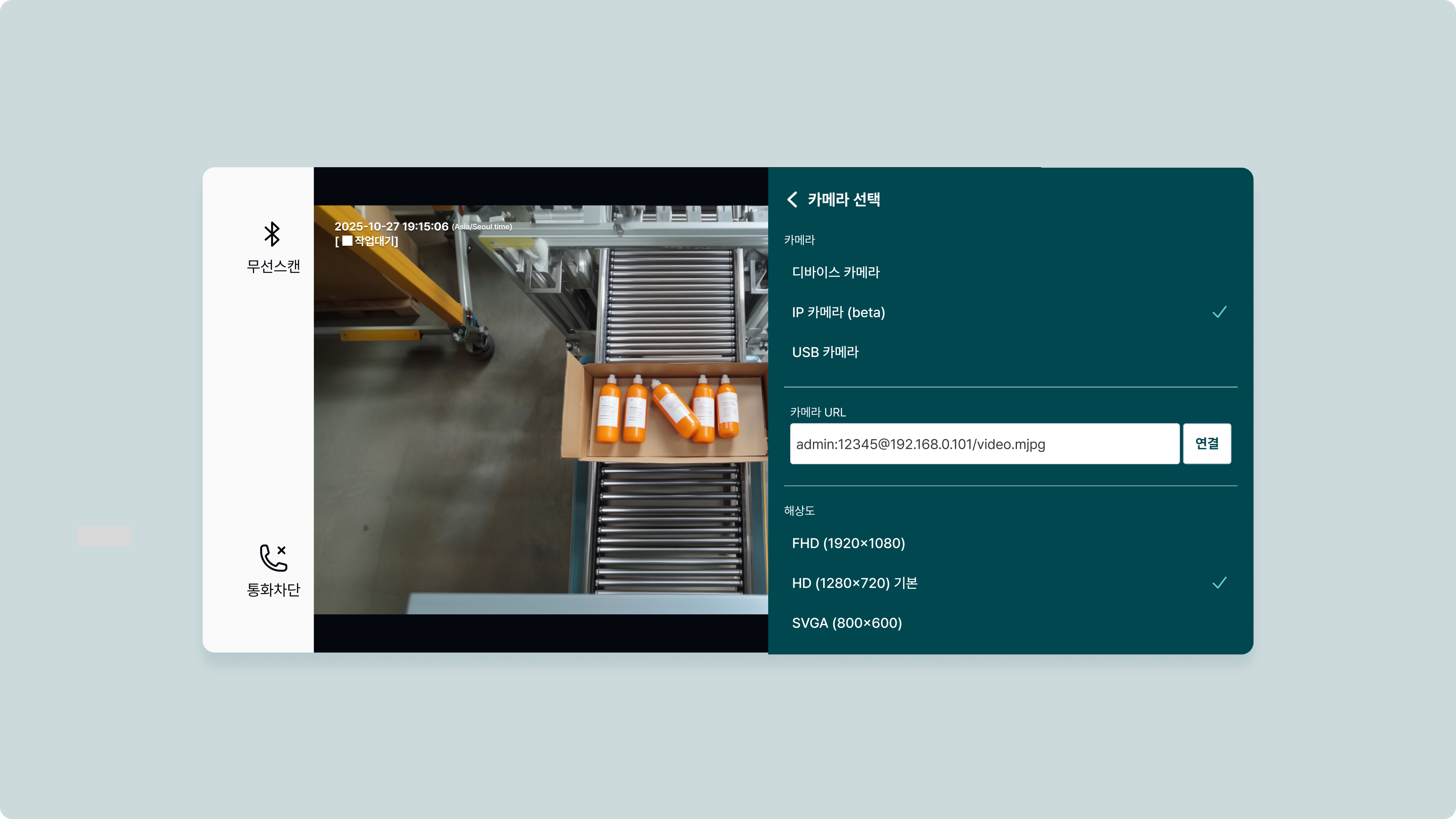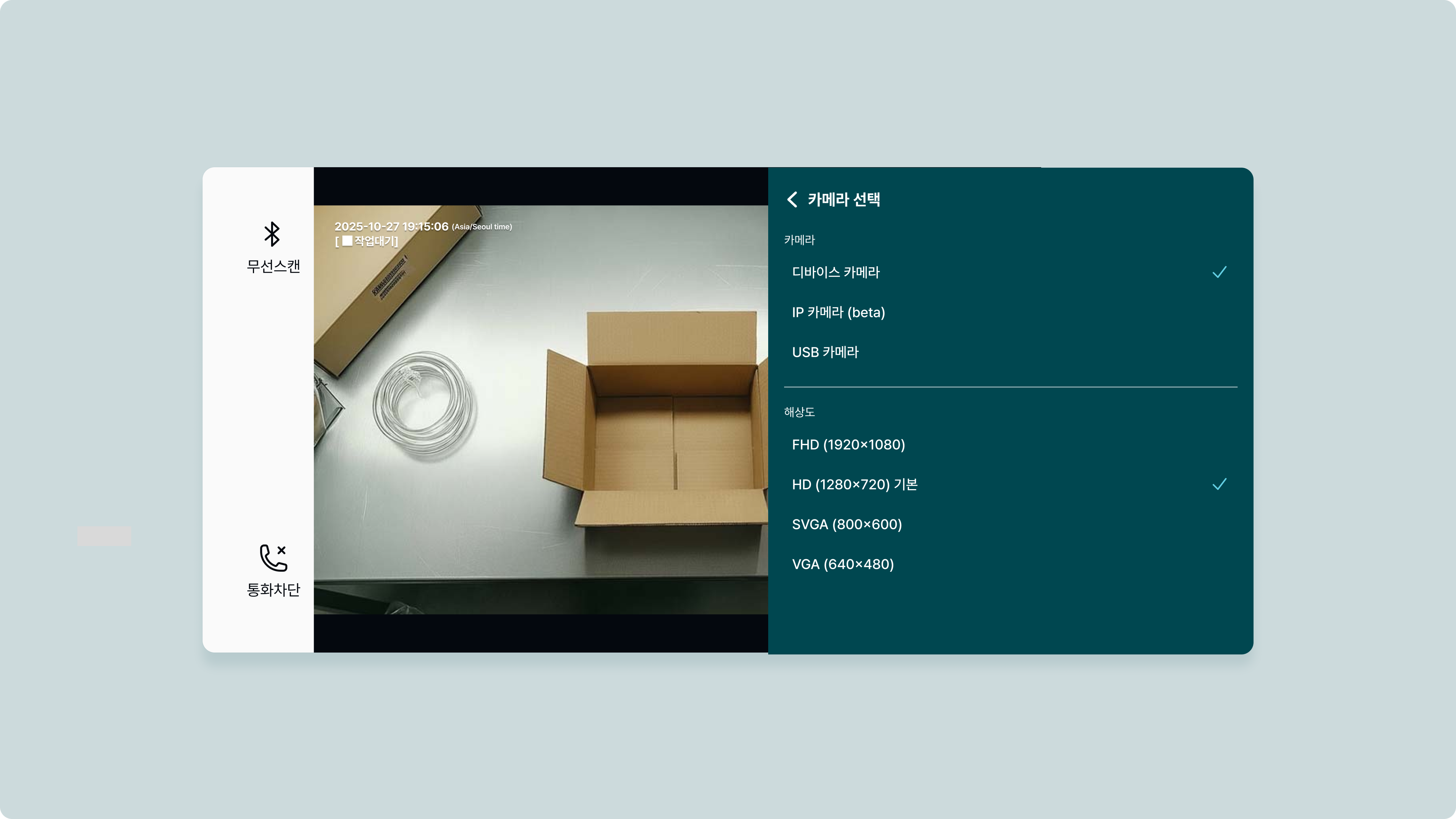 안드로이드는 디바이스 카메라, IP 카메라,USB 카메라 중 선택할 수 있습니다.