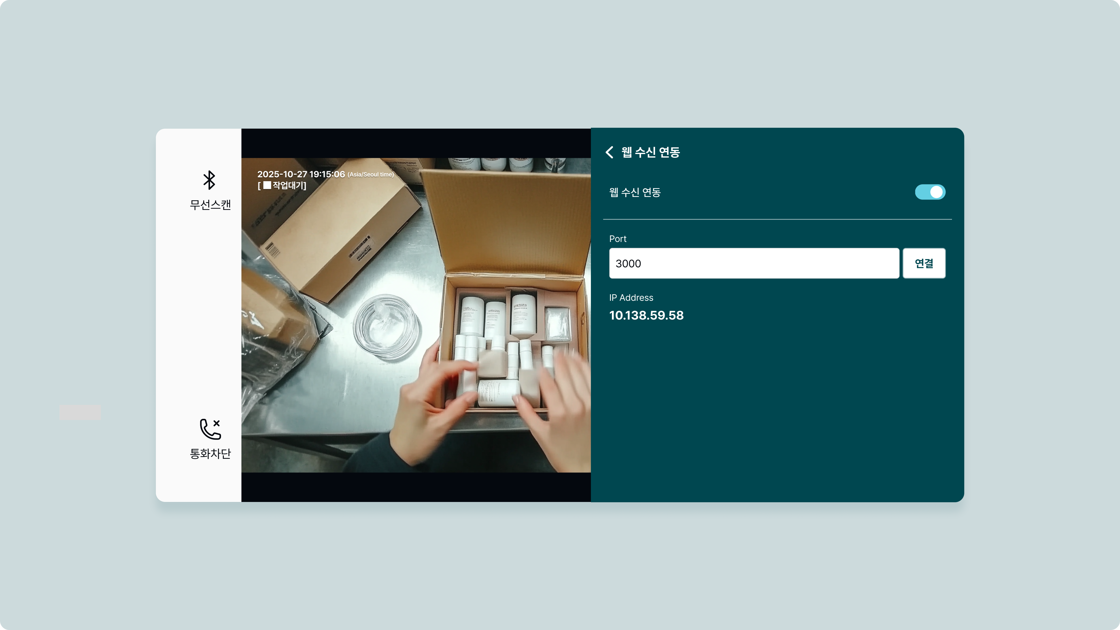 WMS(창고 관리 시스템) 와 연동하여 촬영하는 기능입니다.