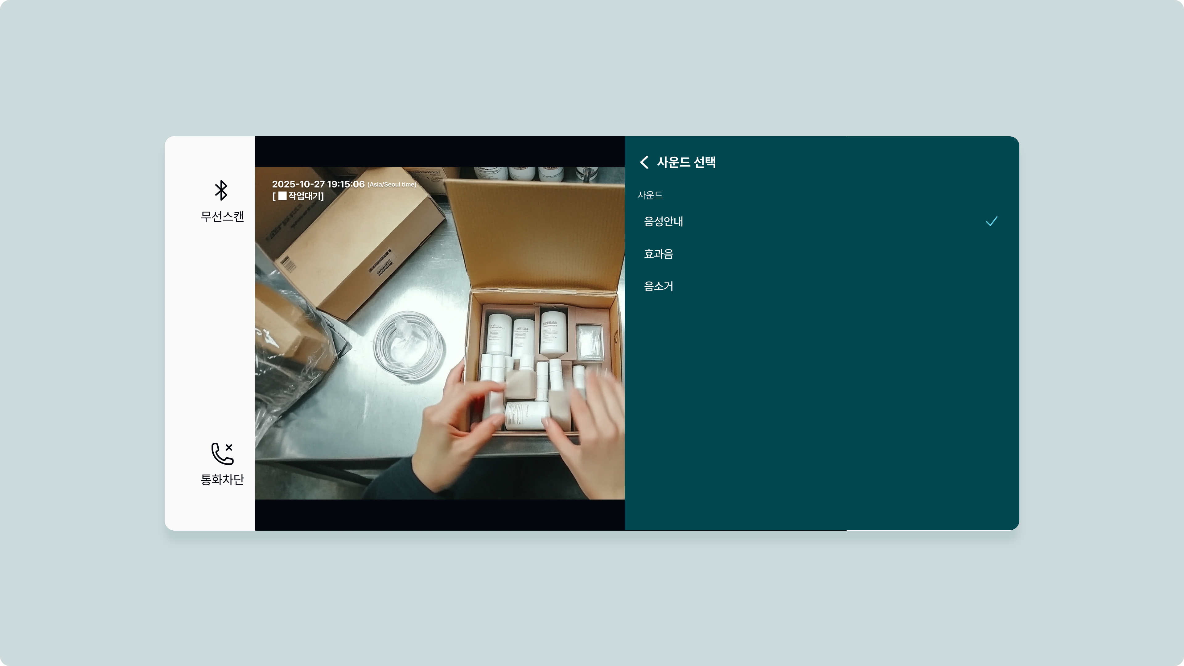 음성 안내, 효과음, 음소거 중 선택합니다.