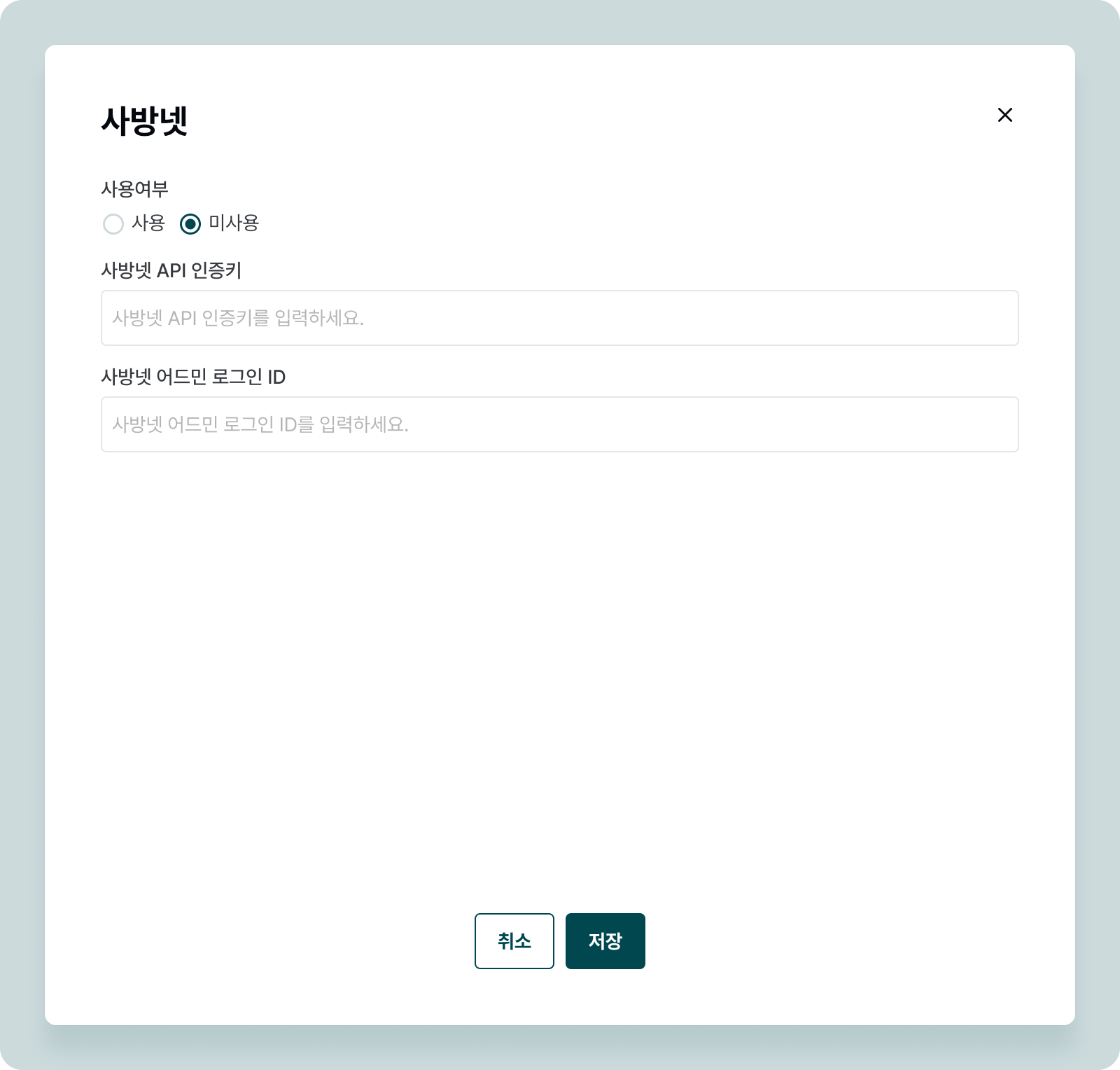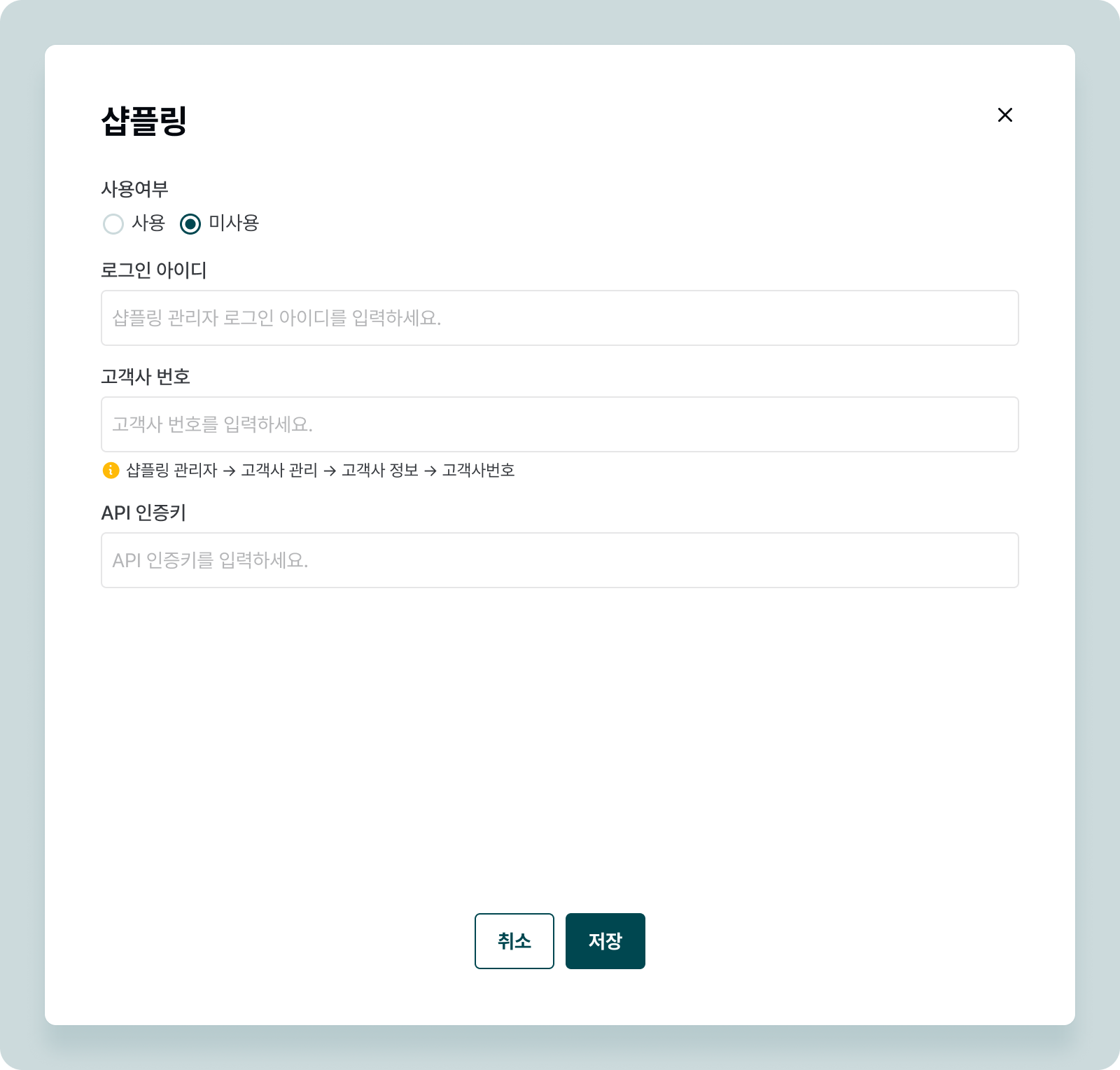 사용 중인 솔루션을 선택하여 연동 정보를 입력합니다.