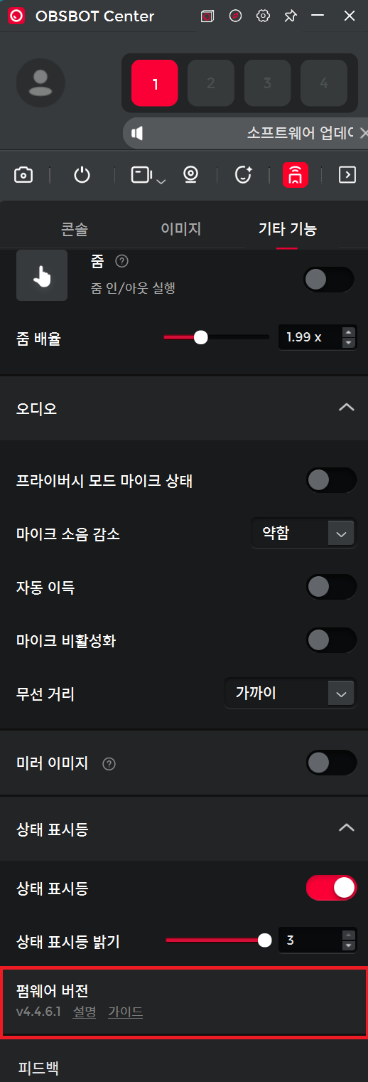 옵스봇 전용 소프트웨어(OBSBOT Center) 설치 및 설정변경