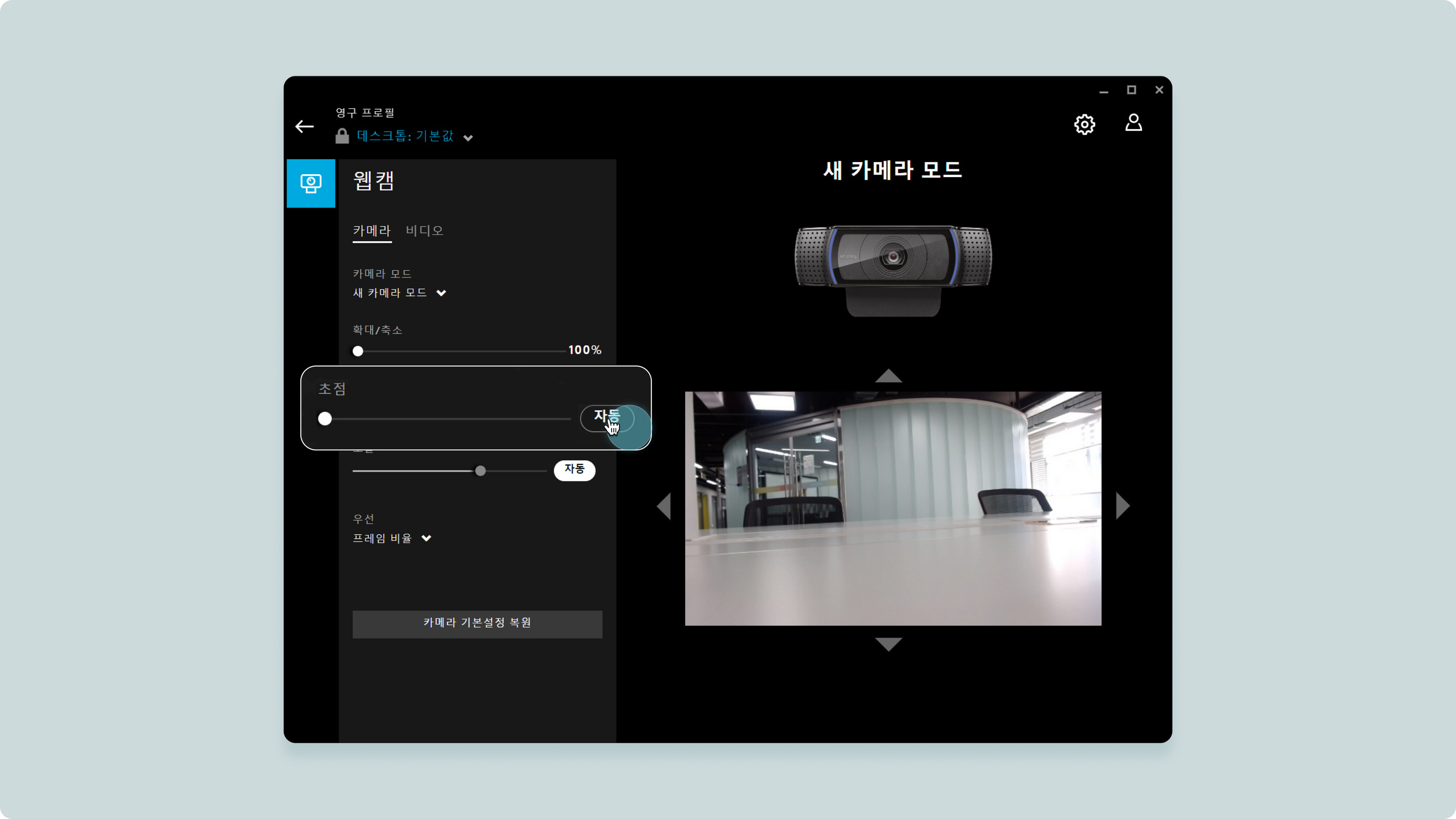 로지텍 C920 설정 프로그램(G hub) 오토 포커스 해제