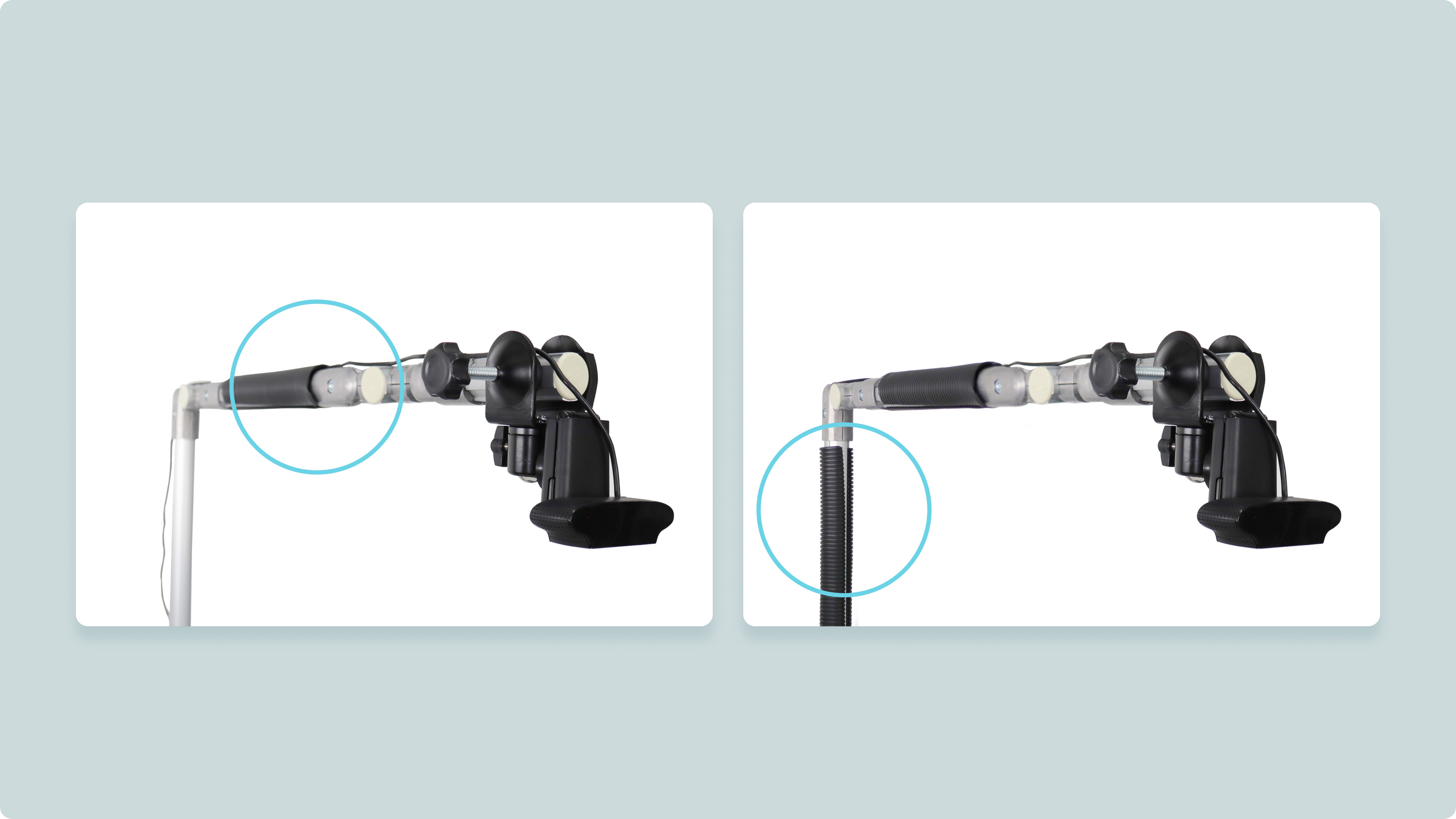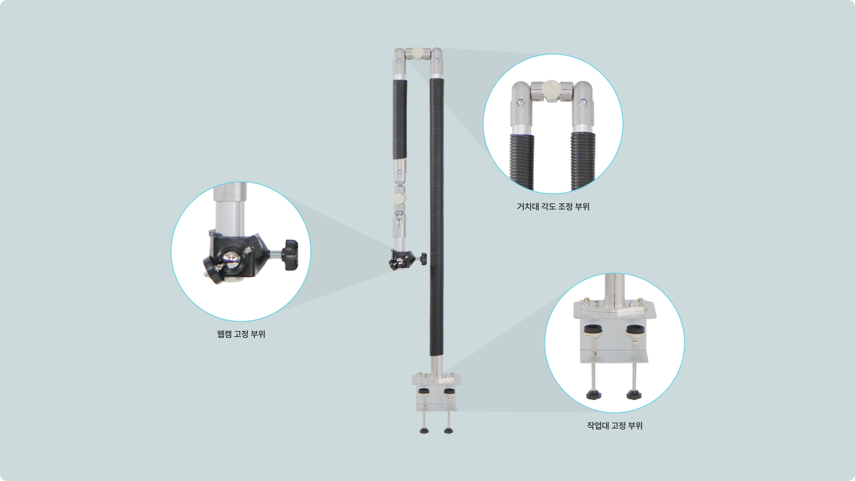작업대에 거치대를 설치하고, 거치대에 웹캠을 고정합니다.