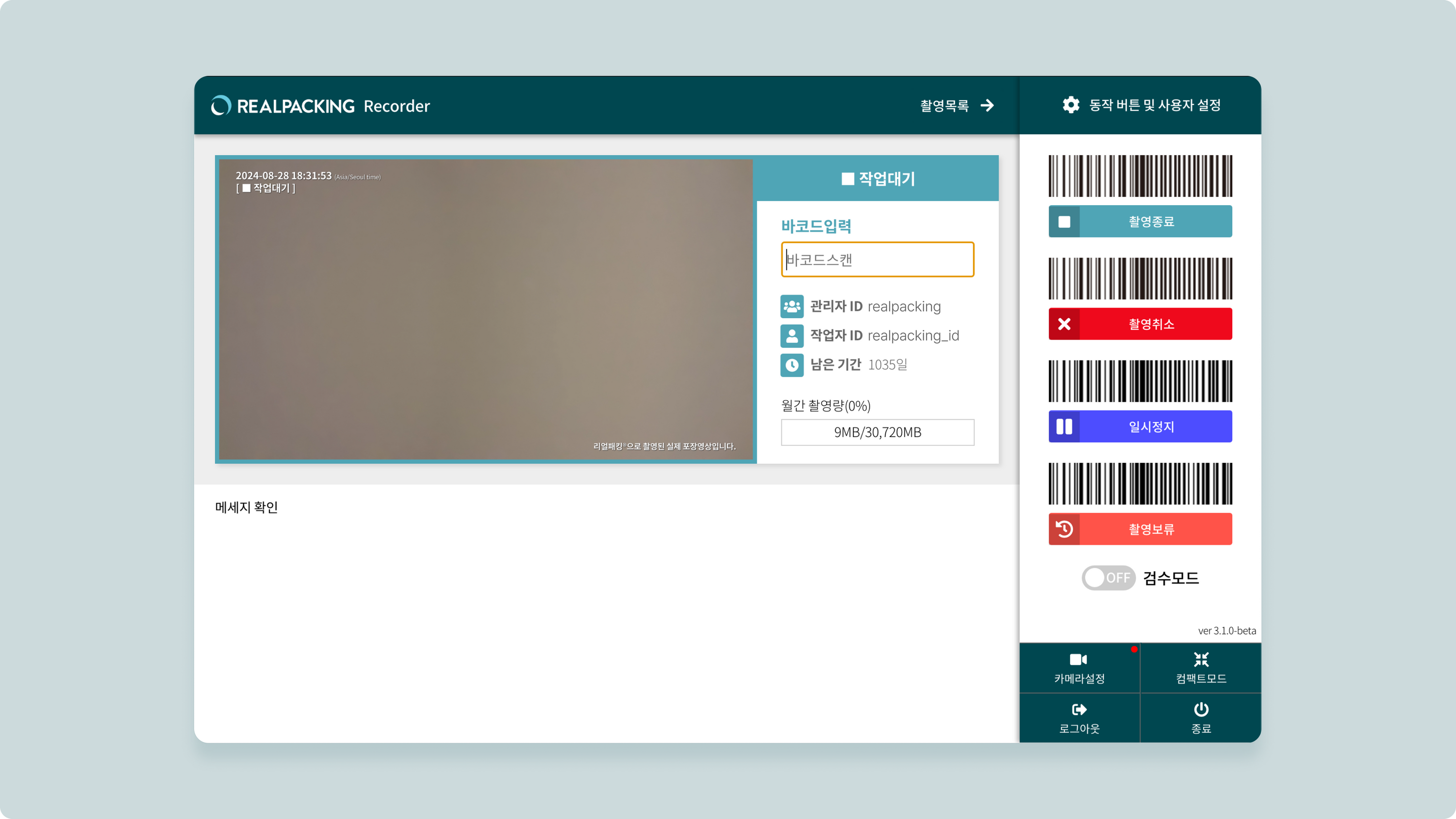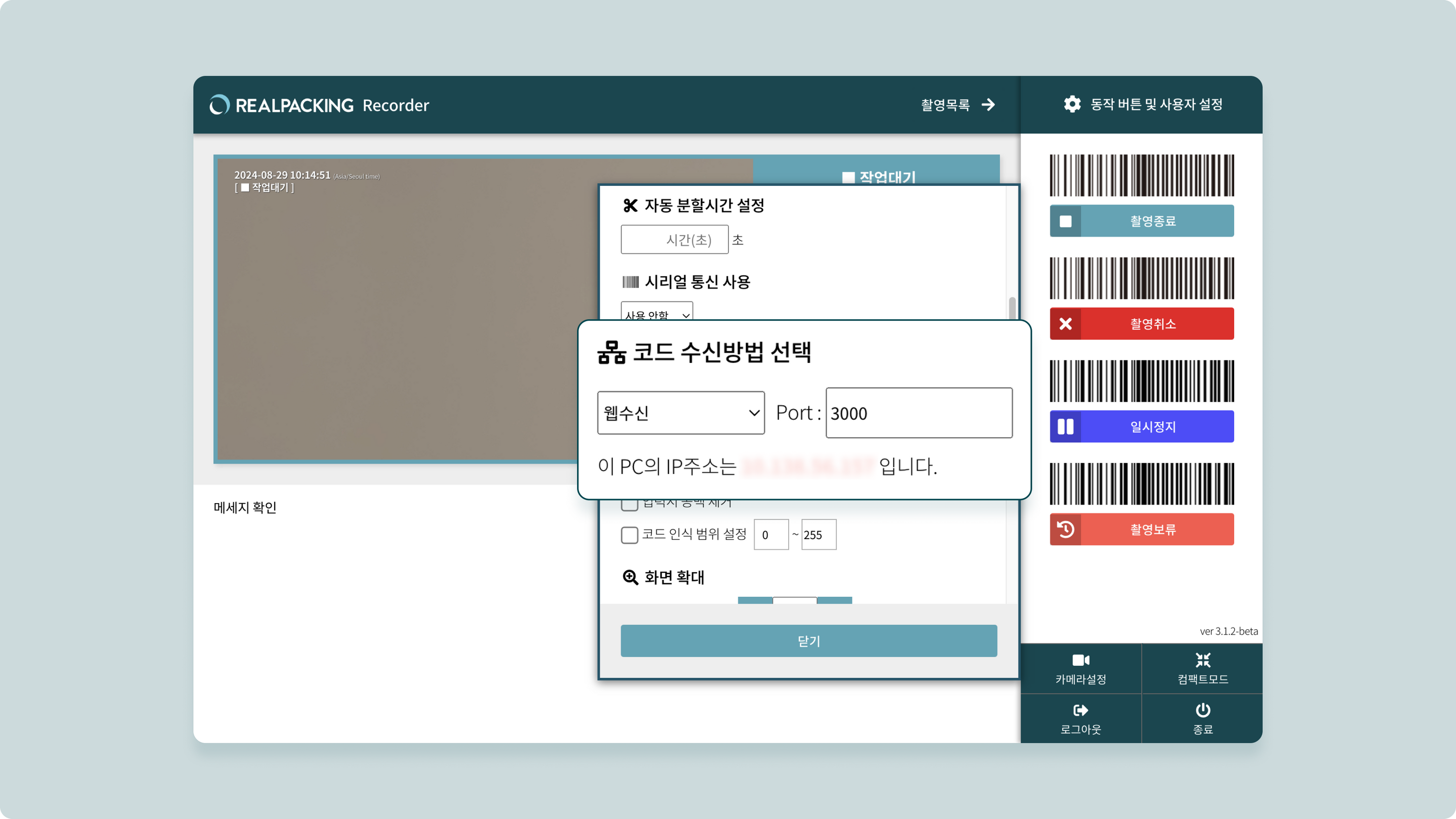 나중에 출력되는 송장(인보이스, 구매내역 등)의 바코드를 스캔하면 스캔된 번호를 기준으로 영상이 저장됩니다.