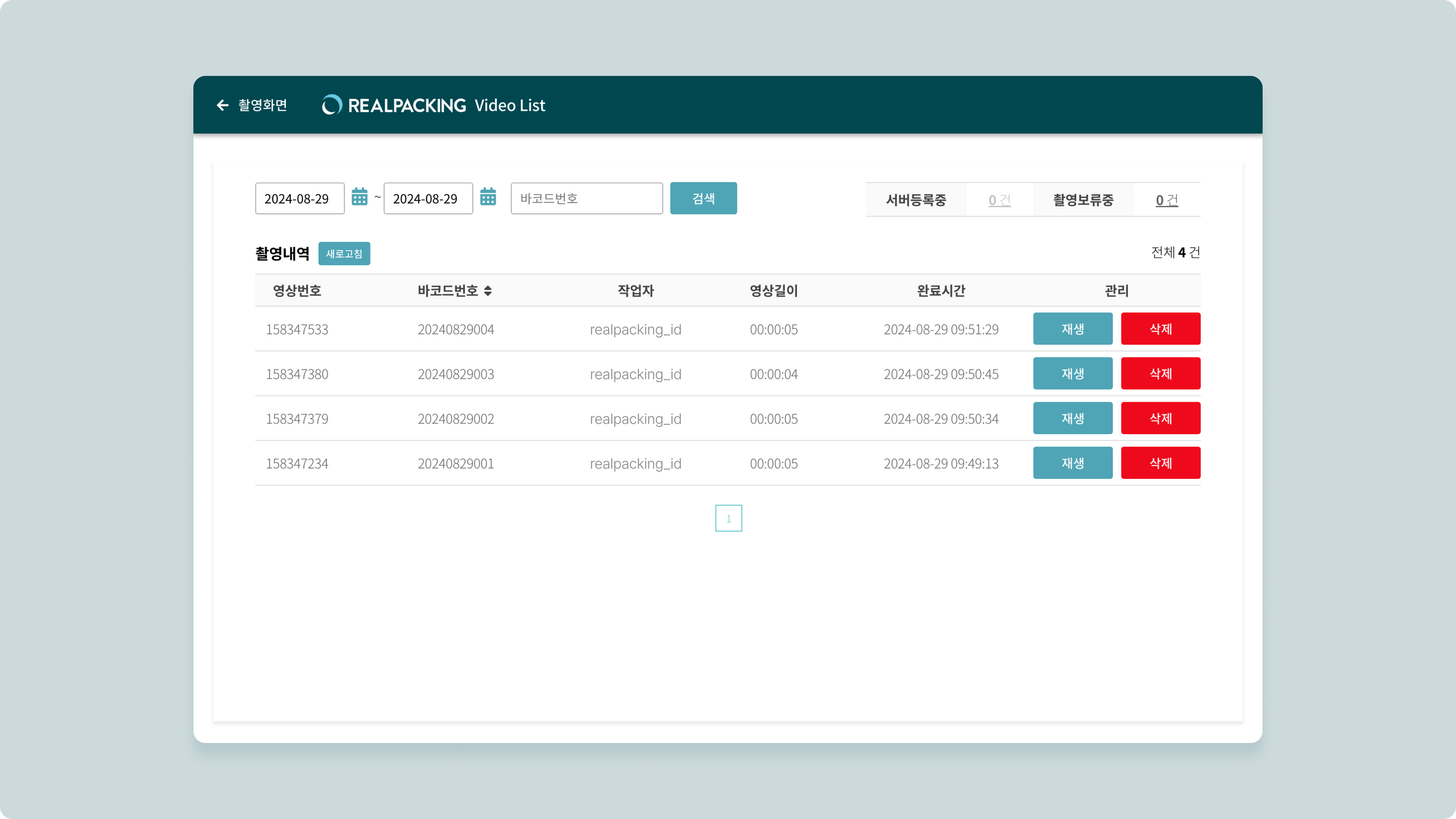 동일한 촬영코드(송장번호)의 영상을 여러 개 촬영할 수 있으며 촬영 일시로 구분합니다.