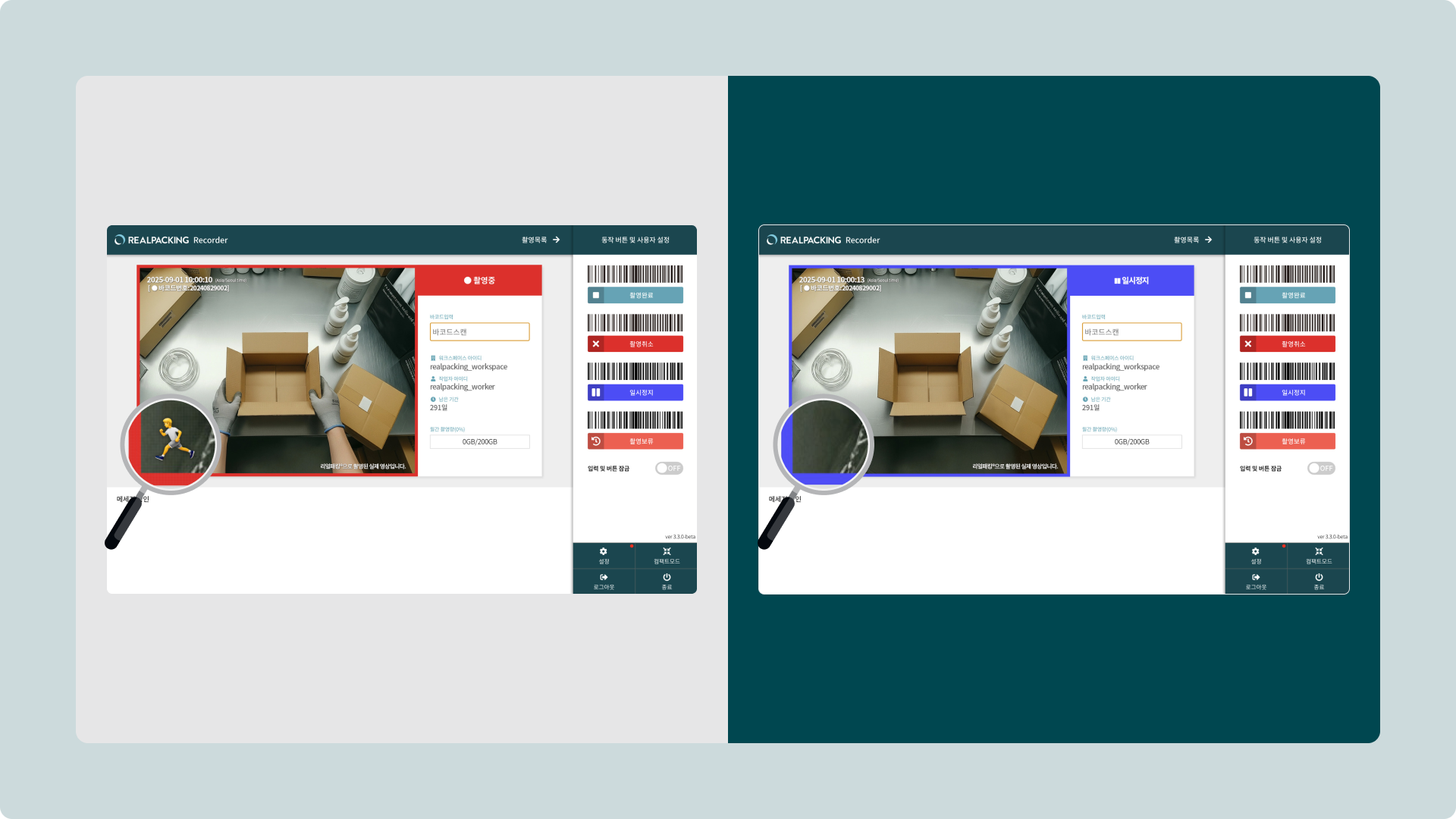 촬영을 시작할 때와 종료할 때 동일한 바코드를 스캔하여 녹화를 진행합니다.