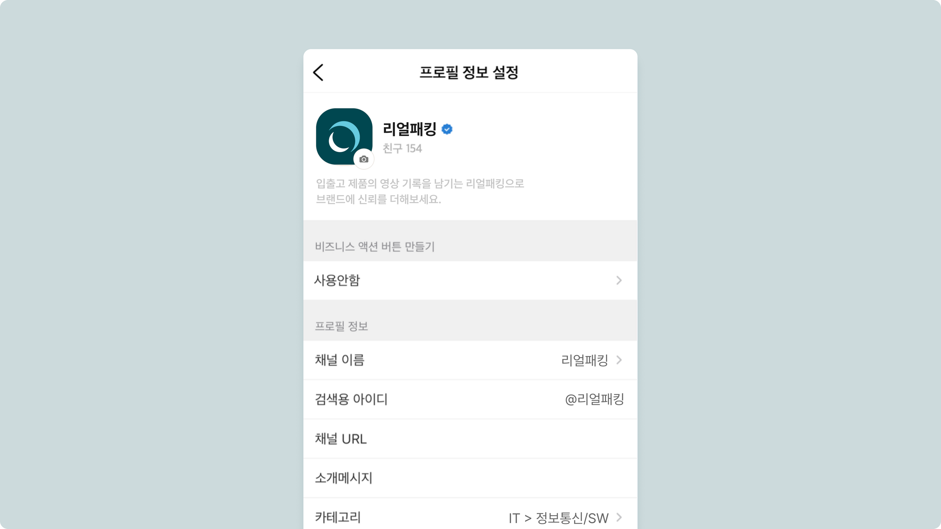 설정 → 카카오 채널 등록