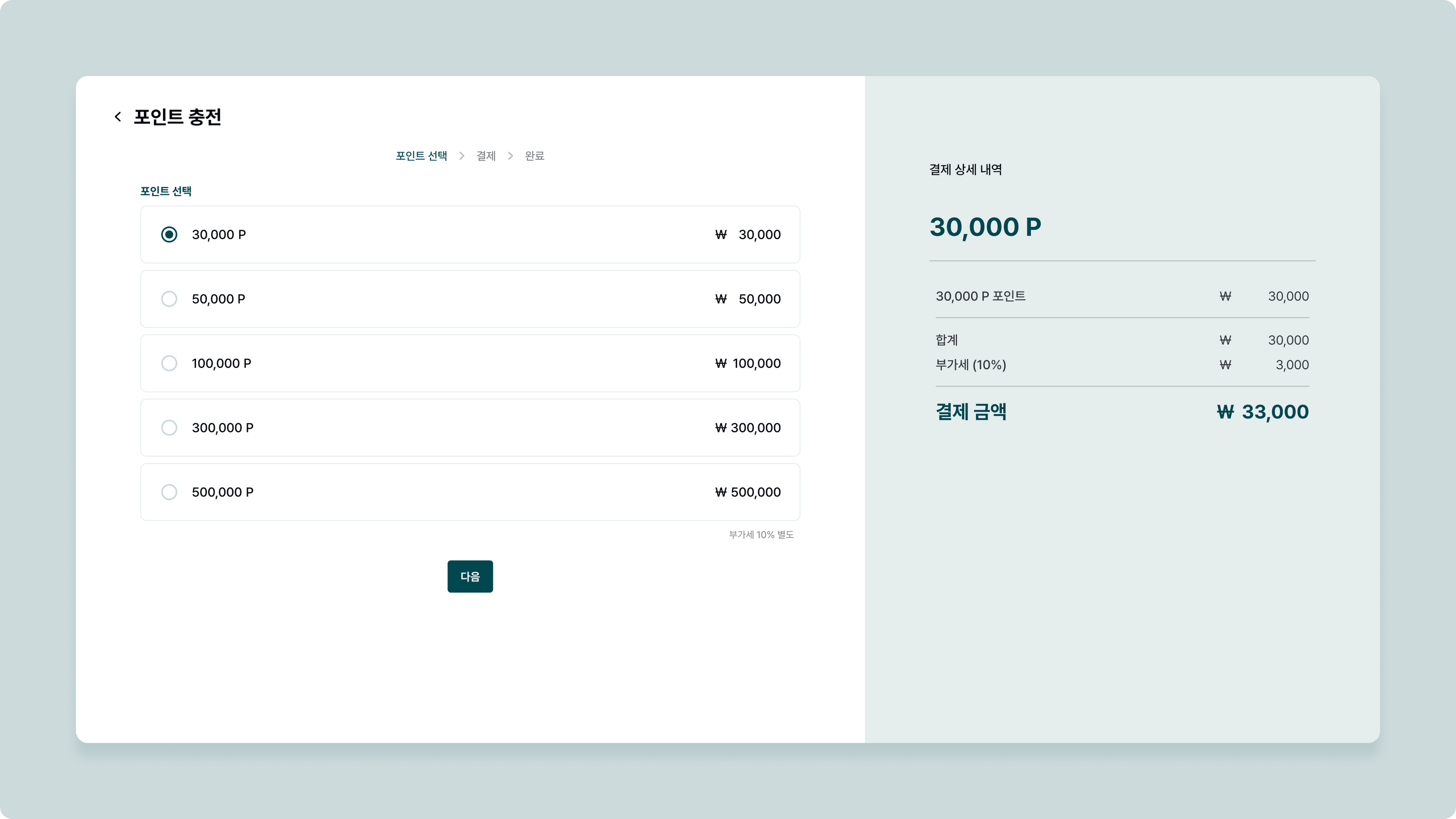 충전할 포인트를 선택합니다.